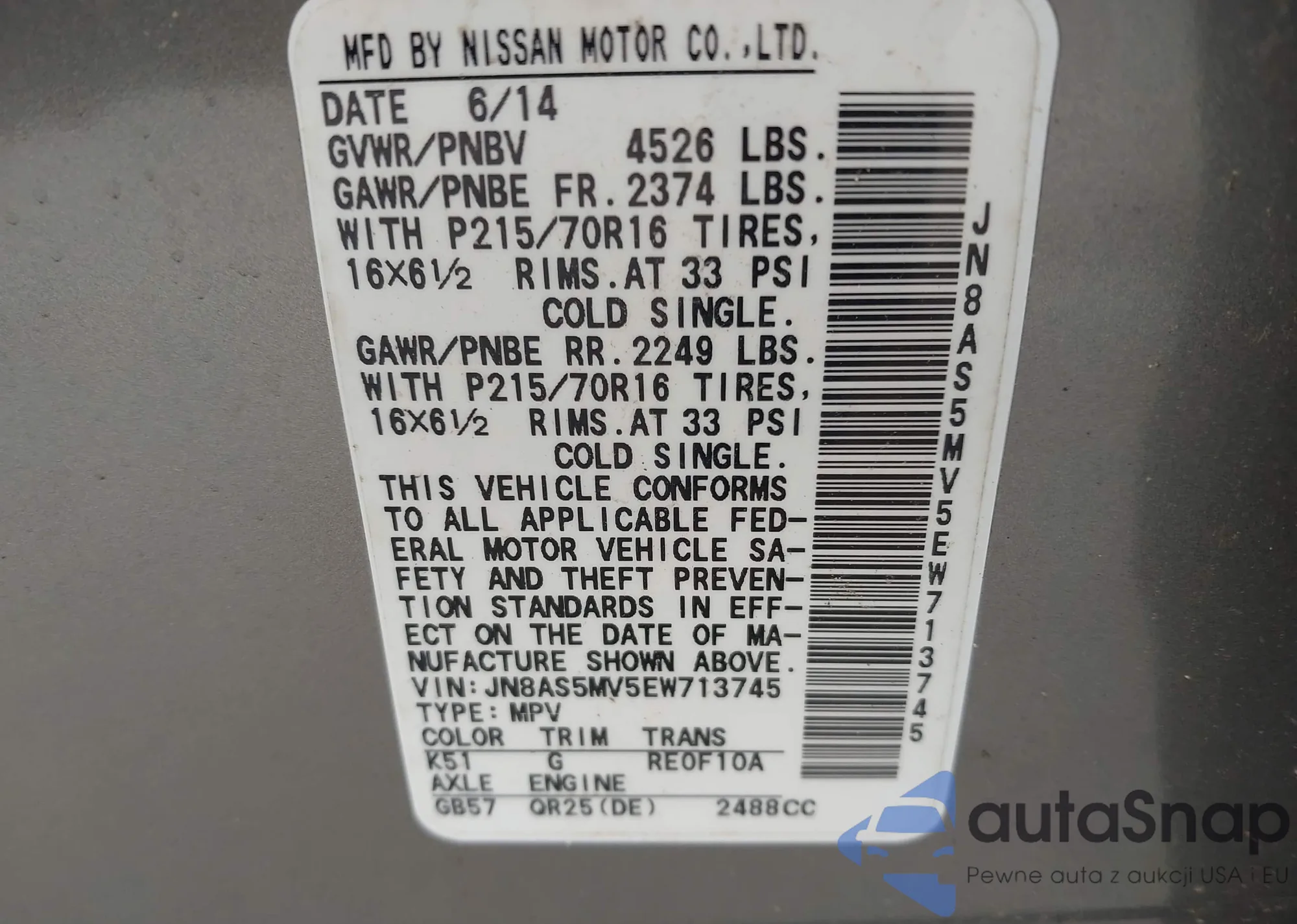 LOT: 41418435 VIN: JN1BJ1CR9HW108652