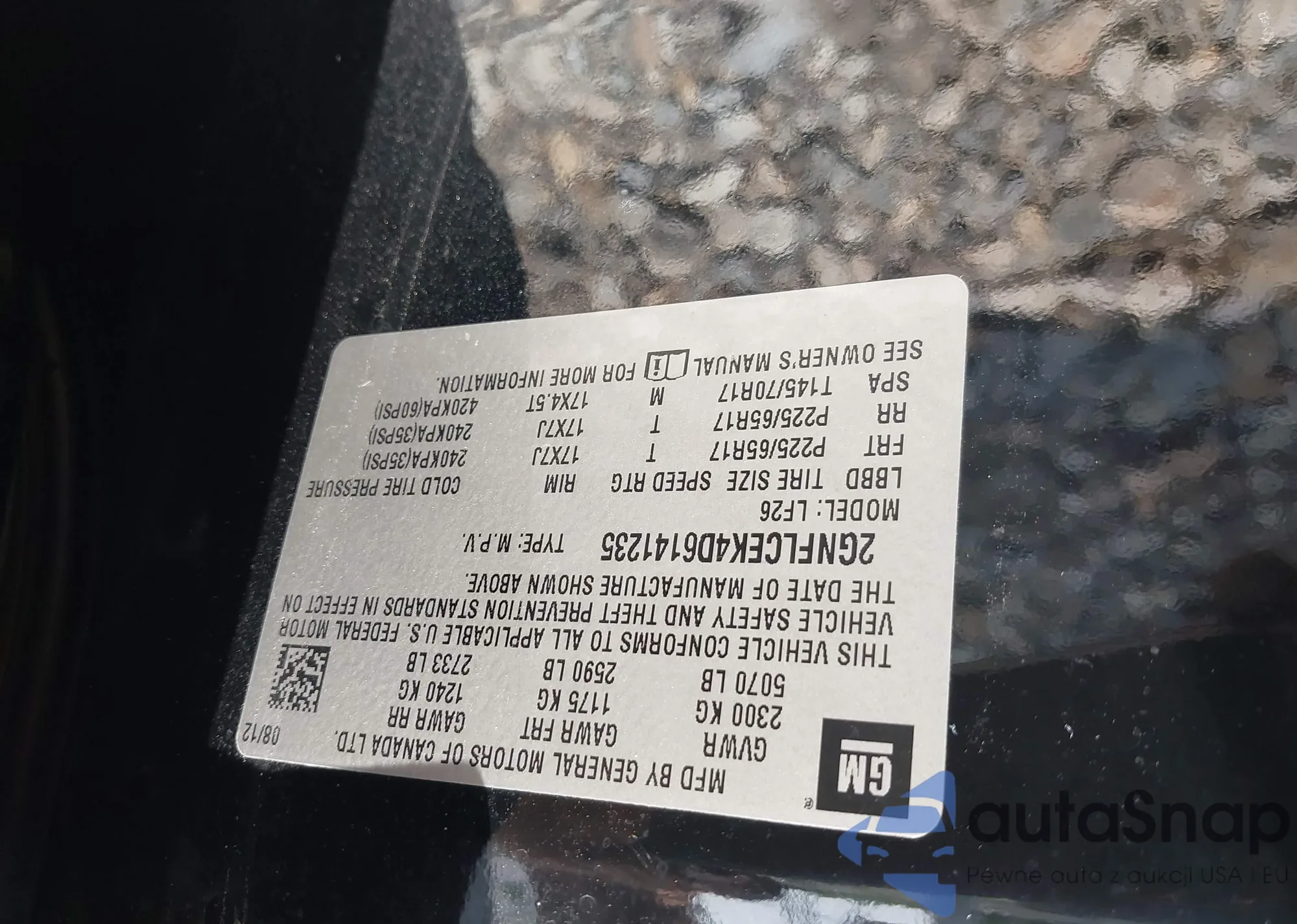 LOT: 39974227 VIN: 2GNFLCEK4D6141235
