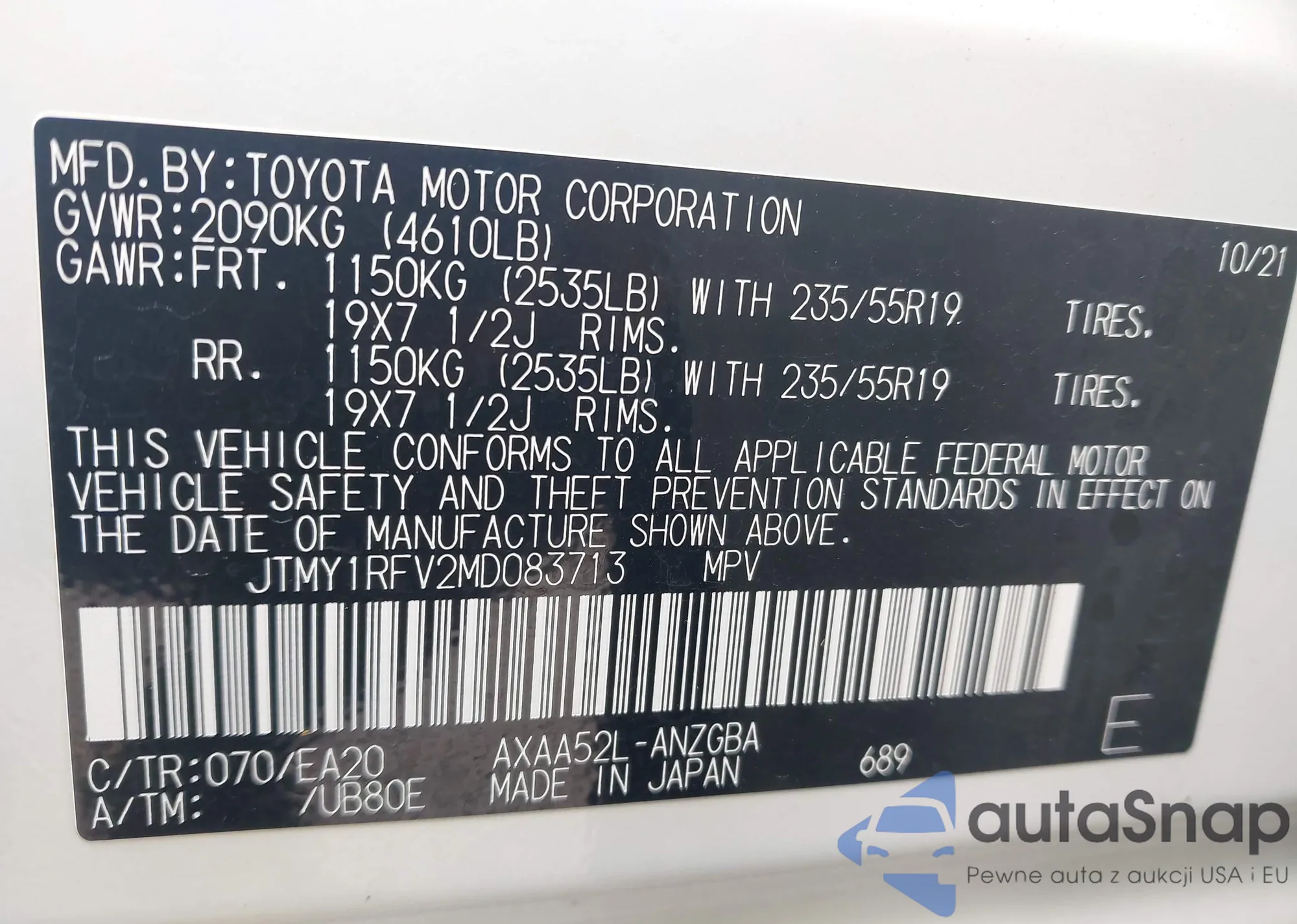 • VIN JN1BJ1CV8LW548013