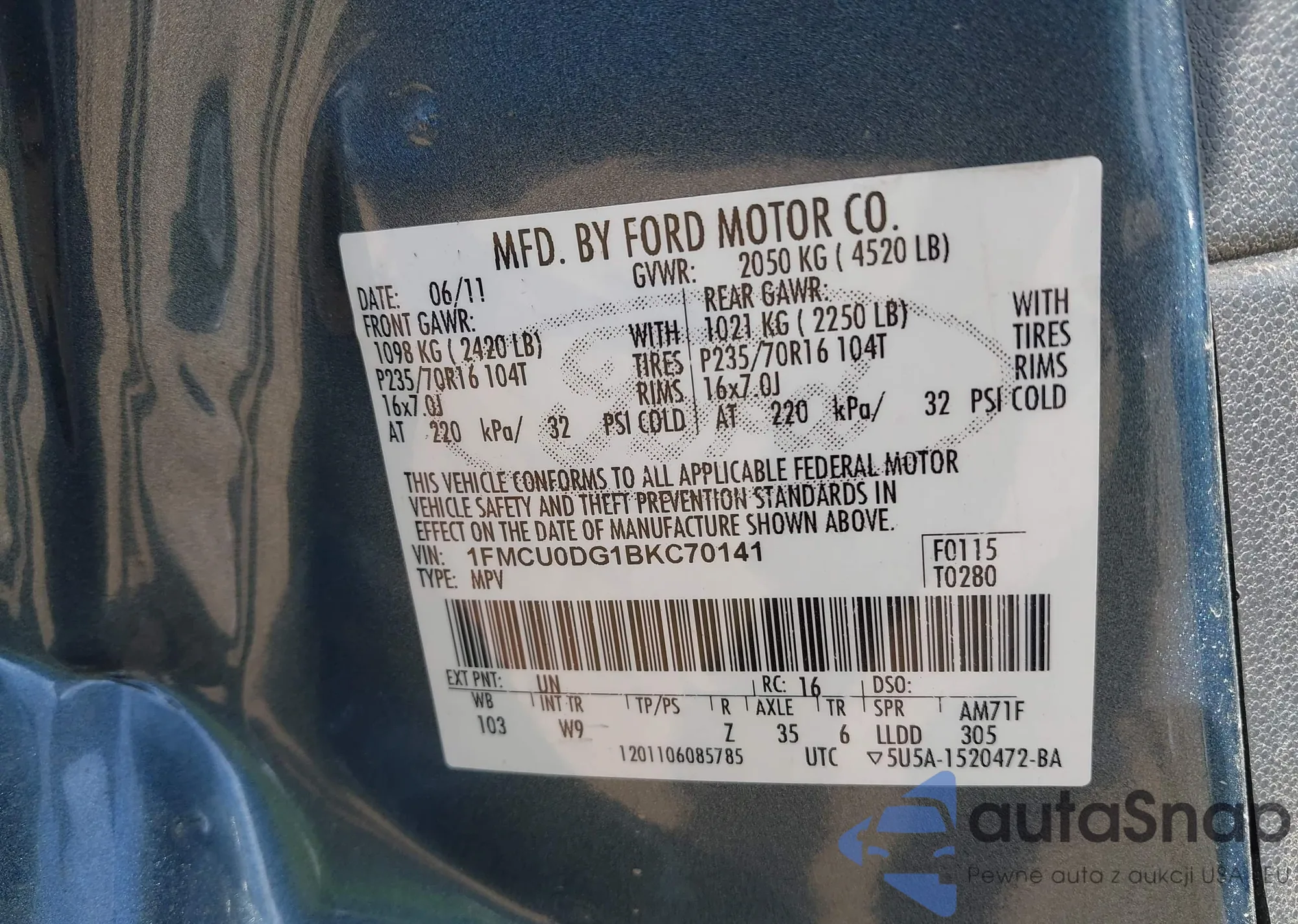 LOT: 42340665 VIN: 3FAHP0KC2BR199390