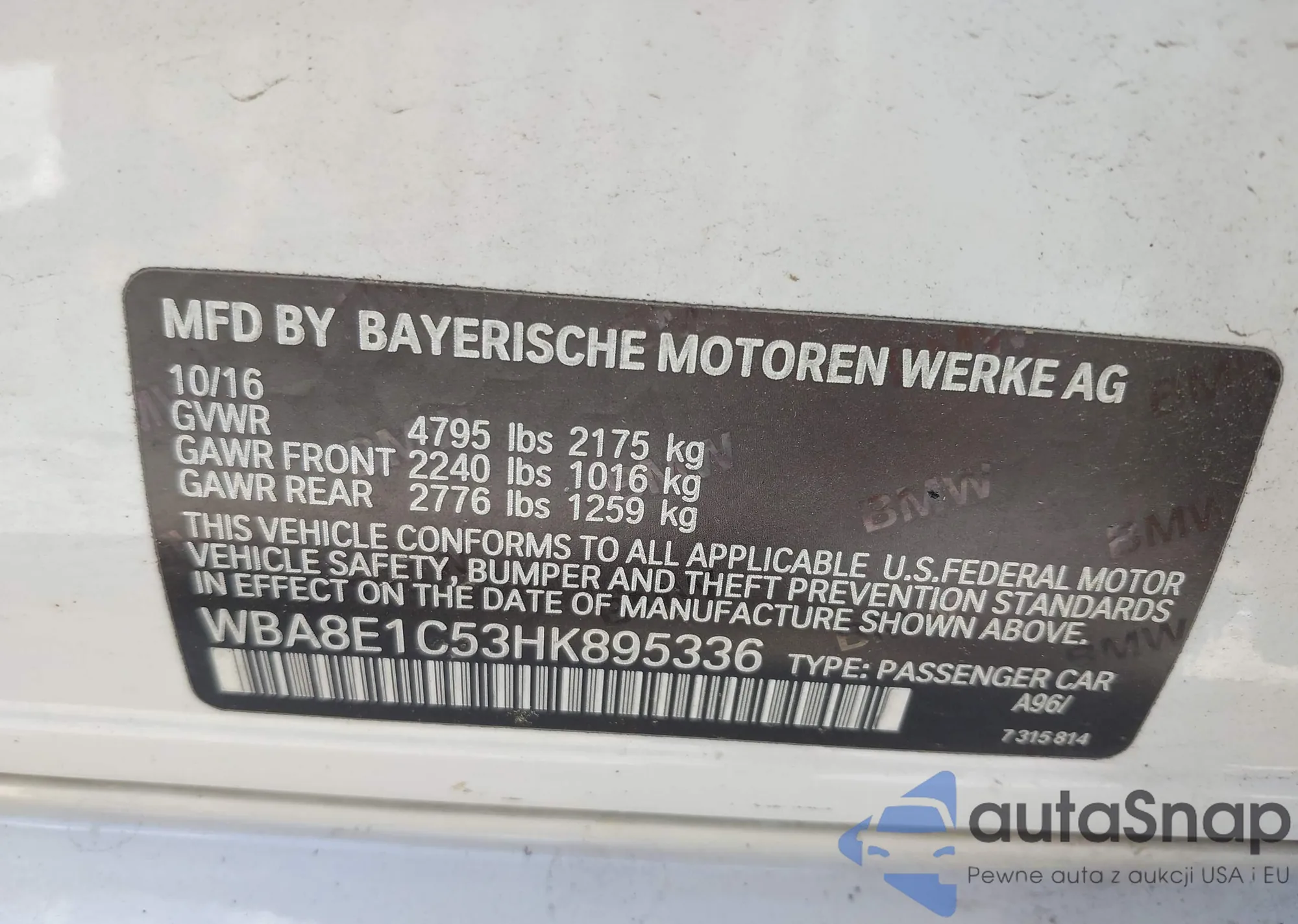 • VIN WBA8E1C53HK895336