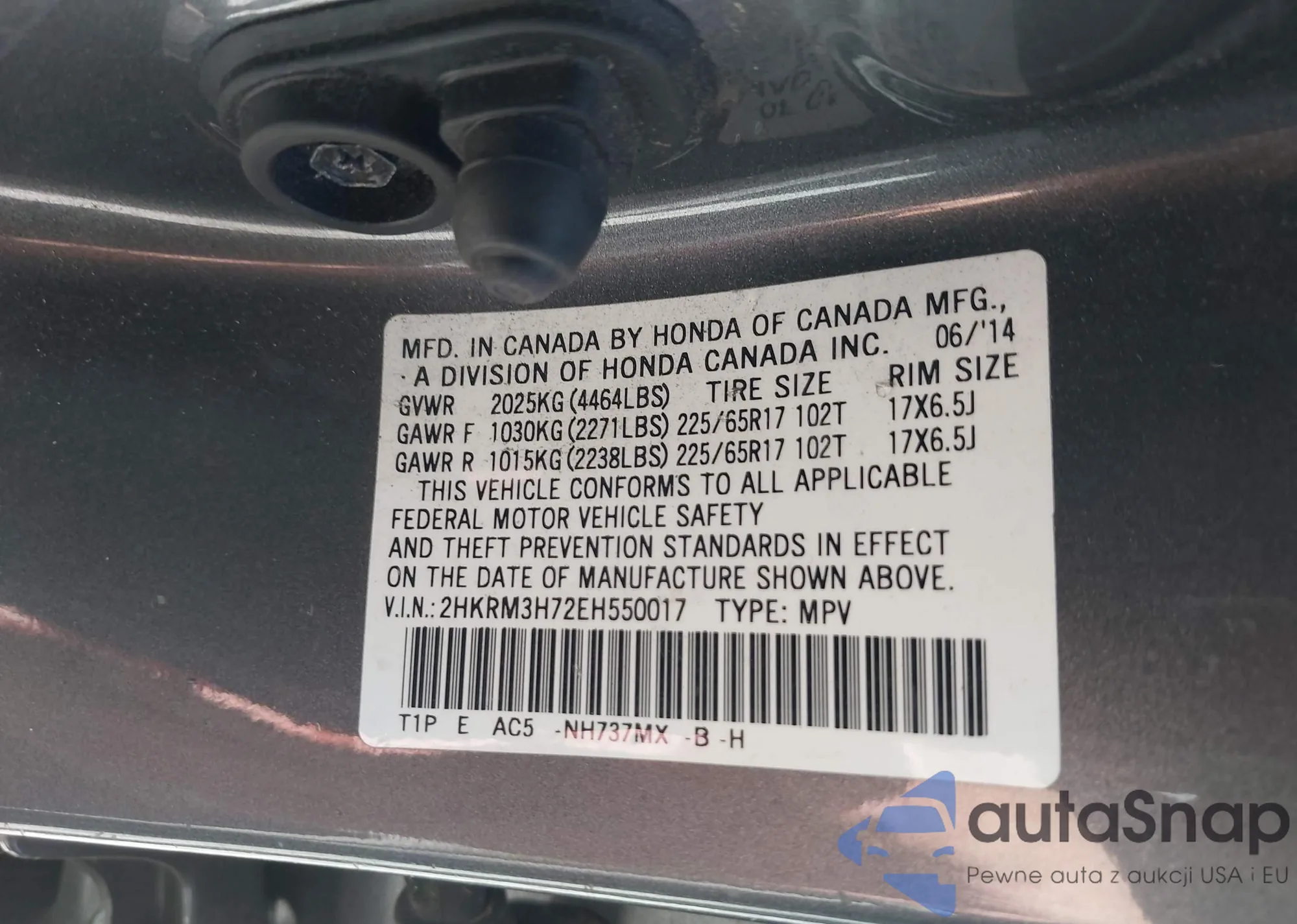 • VIN 2HKRM3H72EH550017