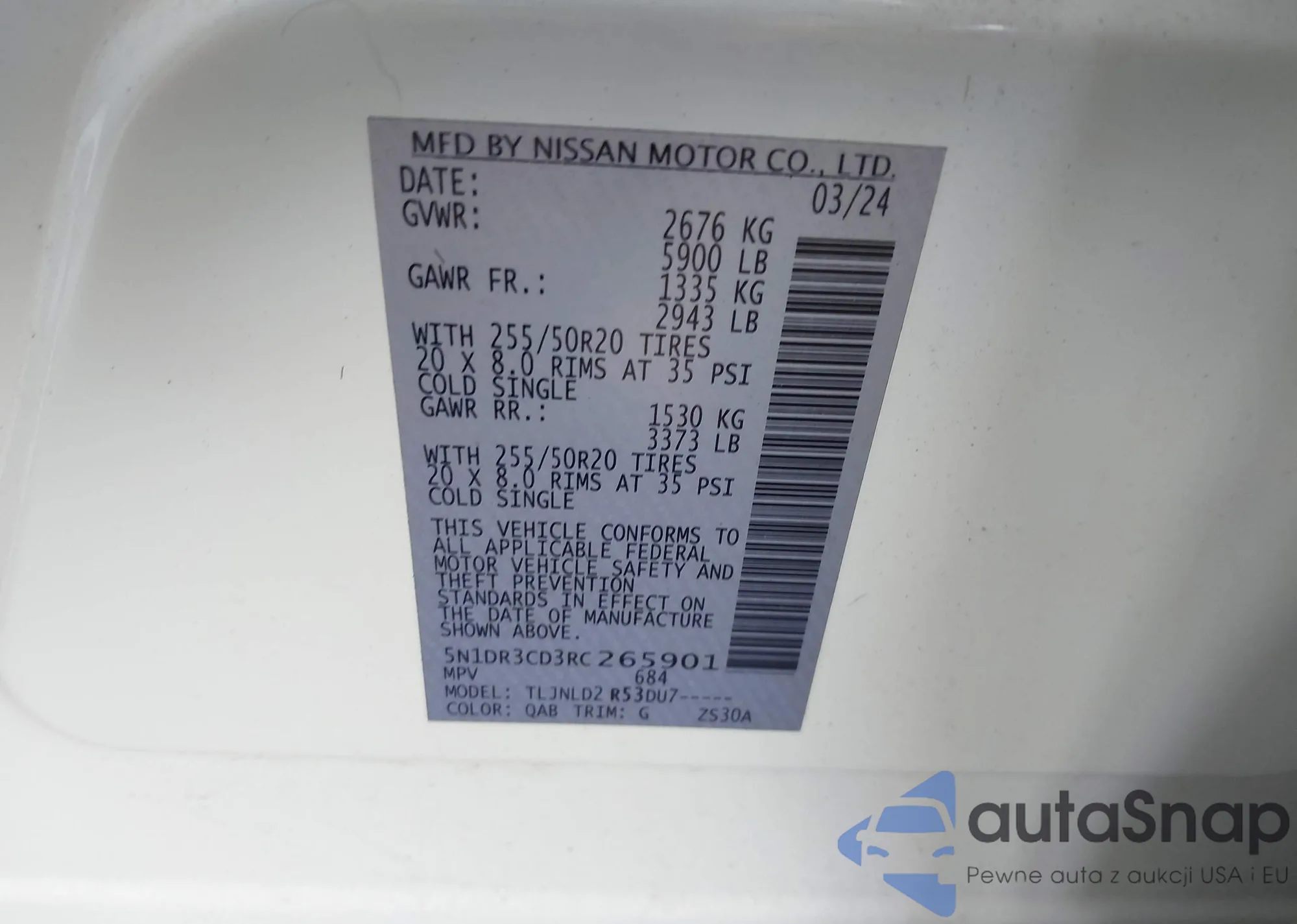 LOT: 42157330 VIN: 5N1DR3CD3RC265901
