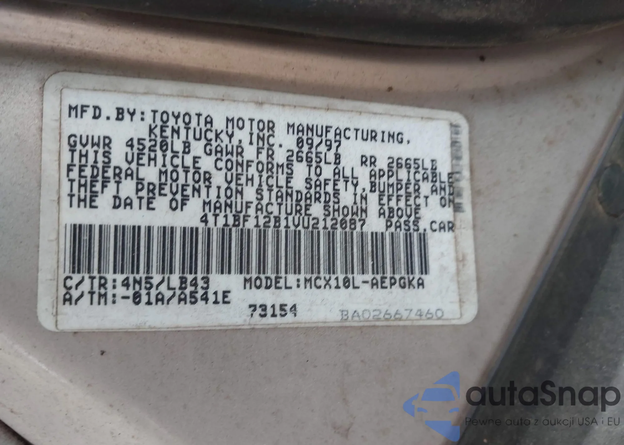 LOT: 42383238 VIN: JTEHF21A620075126