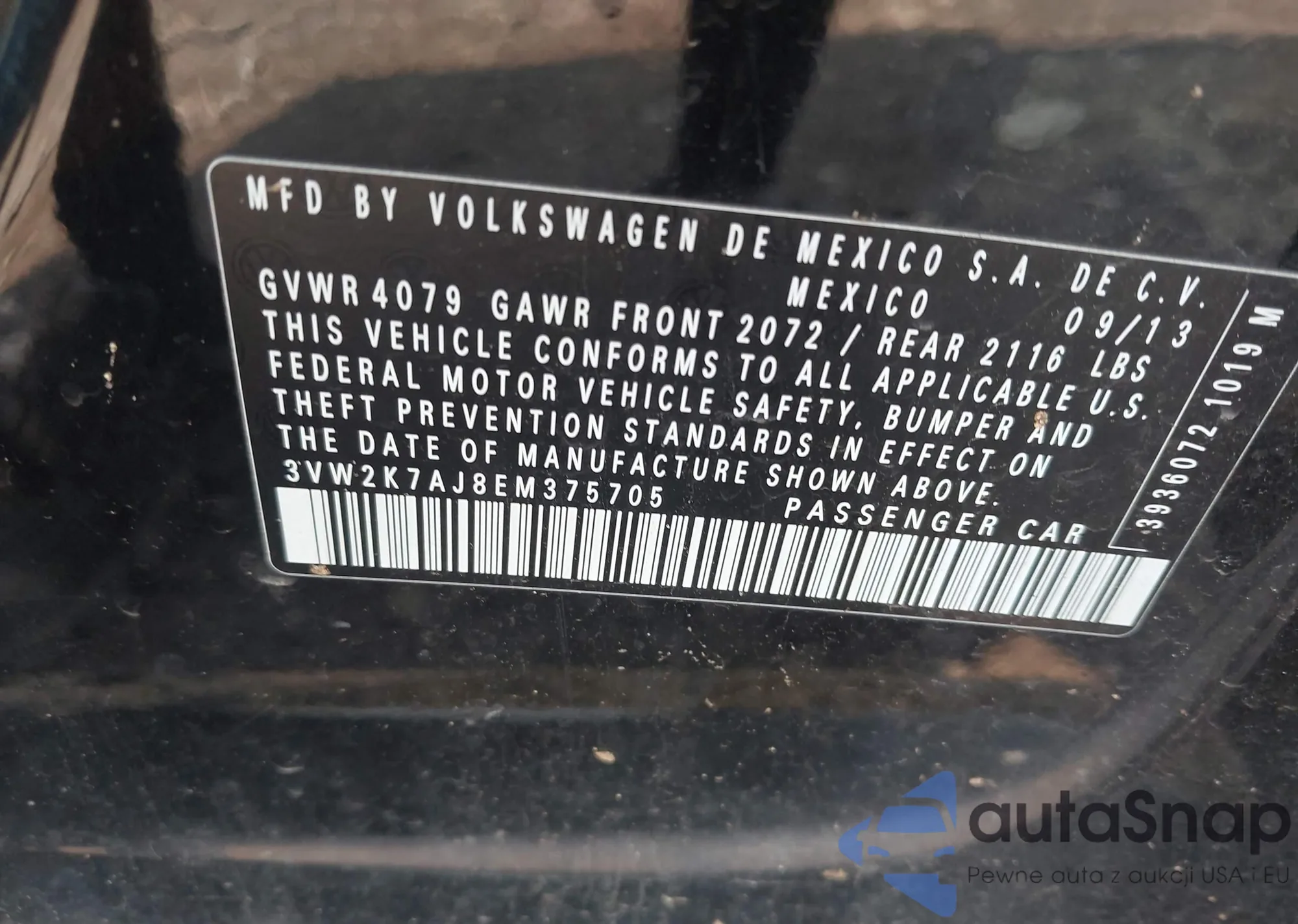 • VIN 3FAHP0JA7CR155354