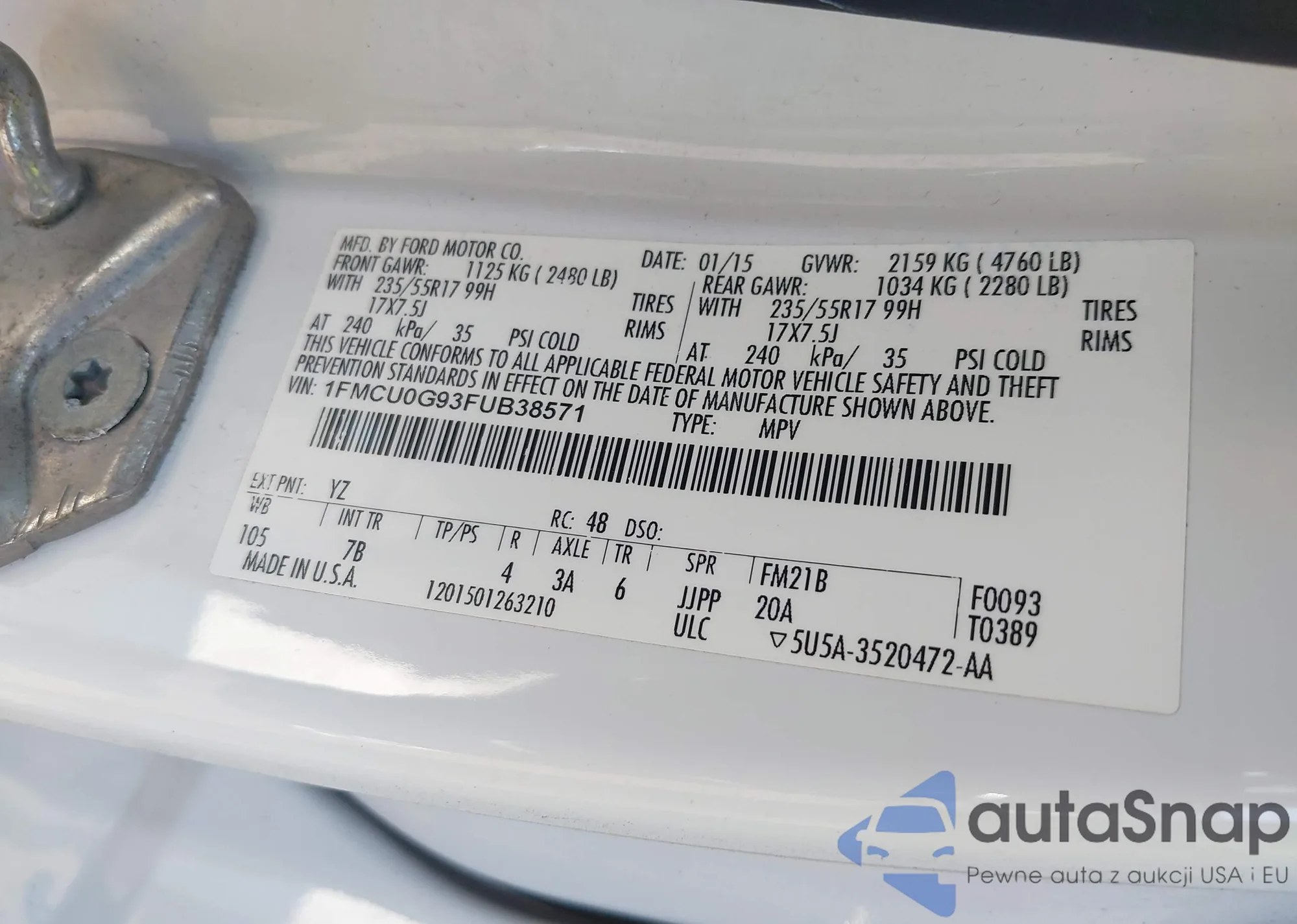 LOT: 42494932 VIN: 1FMCU0G93FUB38571