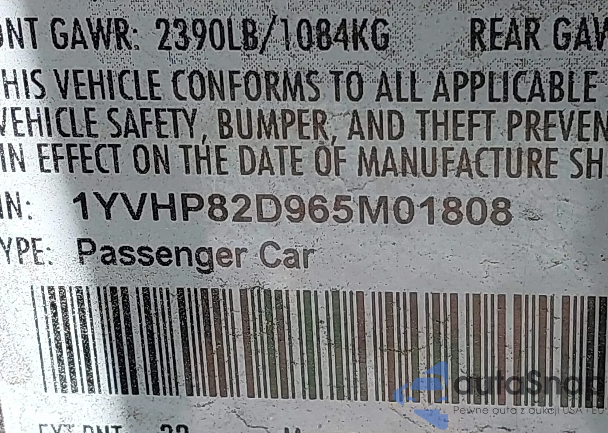LOT: 42330303 VIN: 1YVHP82D965M01808