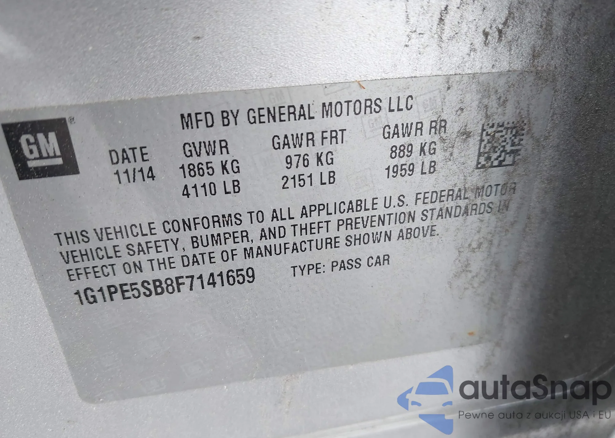 LOT: 42272410 VIN: 1G1PF5S98B7197010
