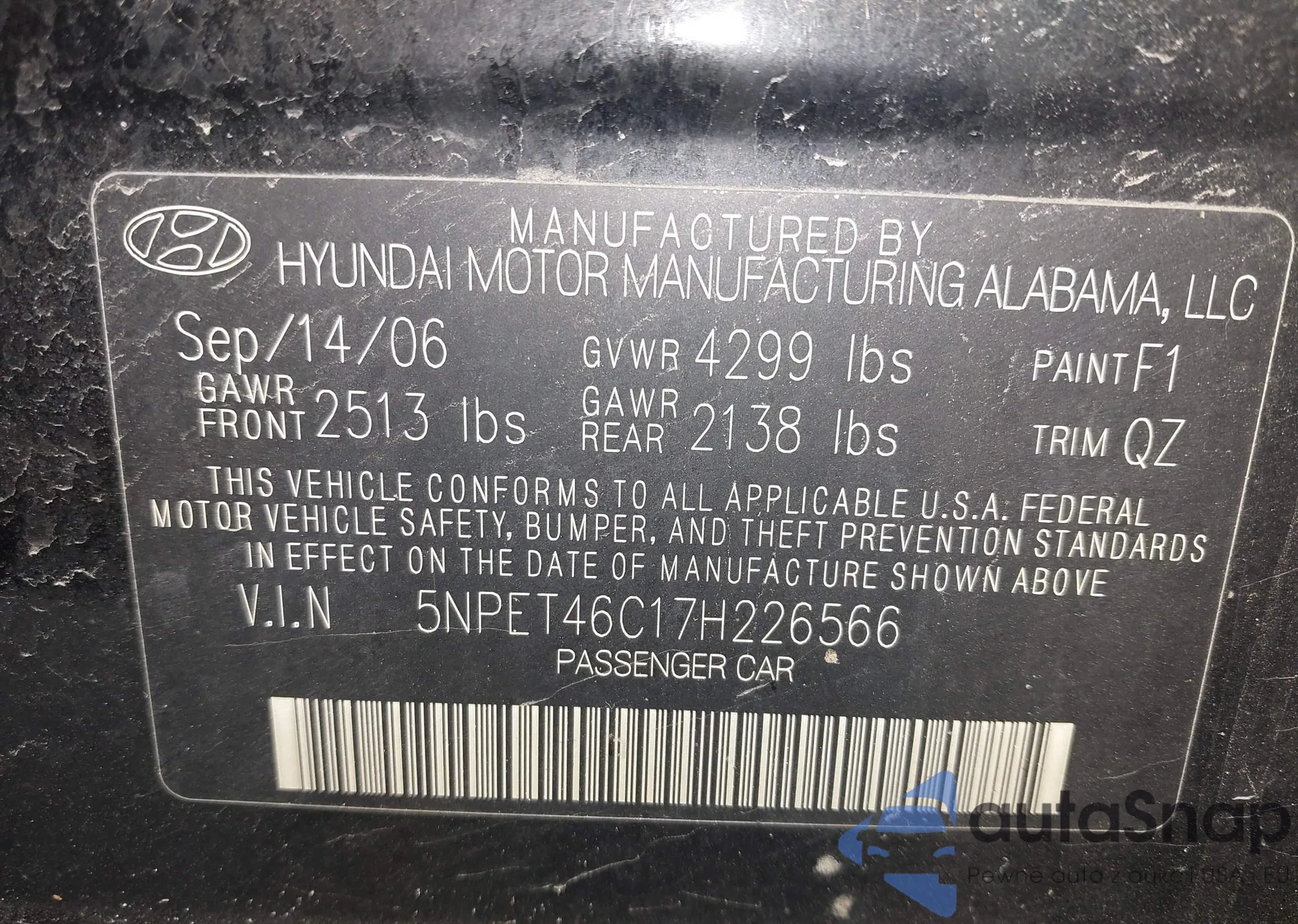 LOT: 42303625 VIN: 5NPET46C17H226566