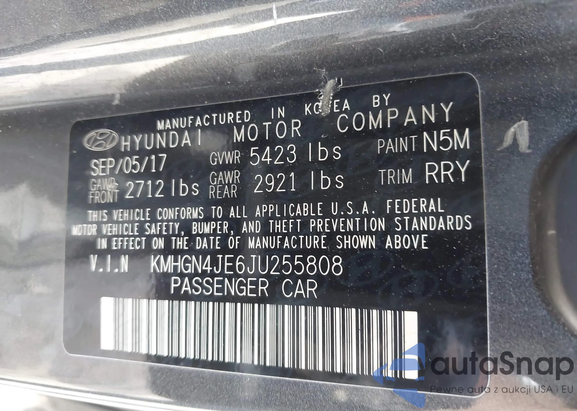 • VIN KMHGN4JE6JU255808
