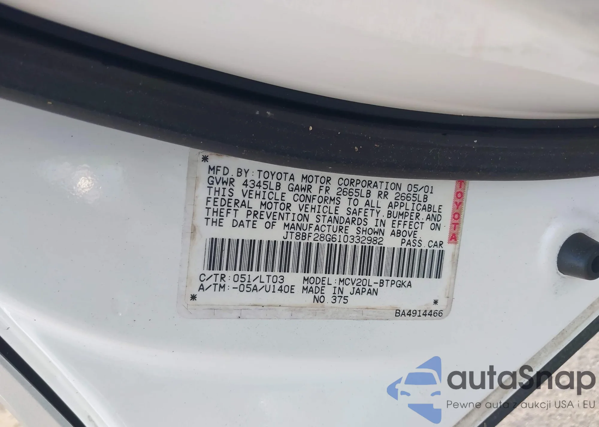 LOT: 42348710 VIN: KMHGN4JE6JU255808