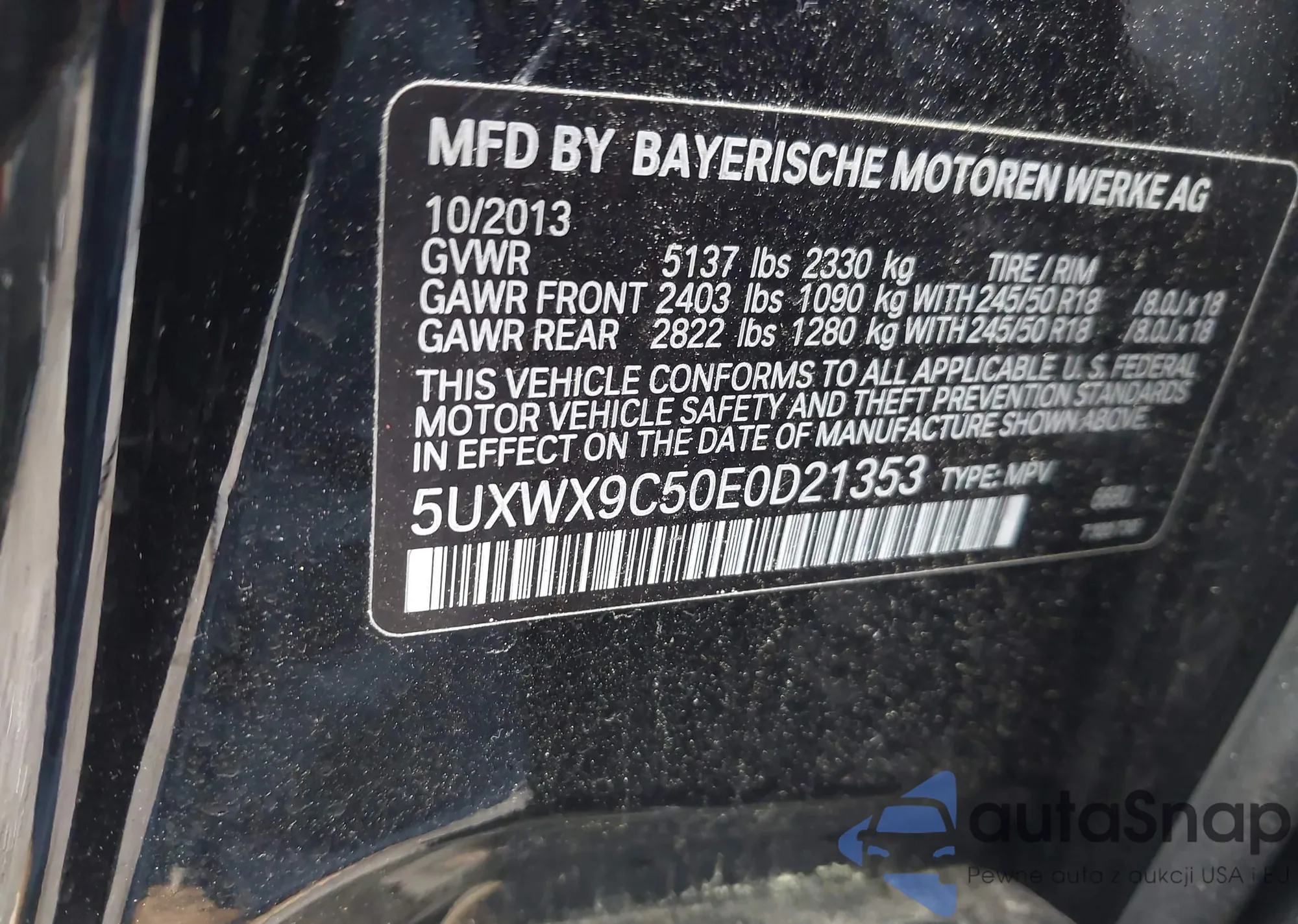 • VIN 5UXWX9C50E0D21353