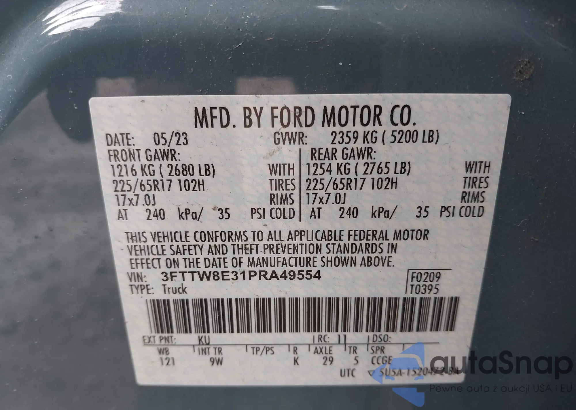 • VIN 3FTTW8E31PRA49554