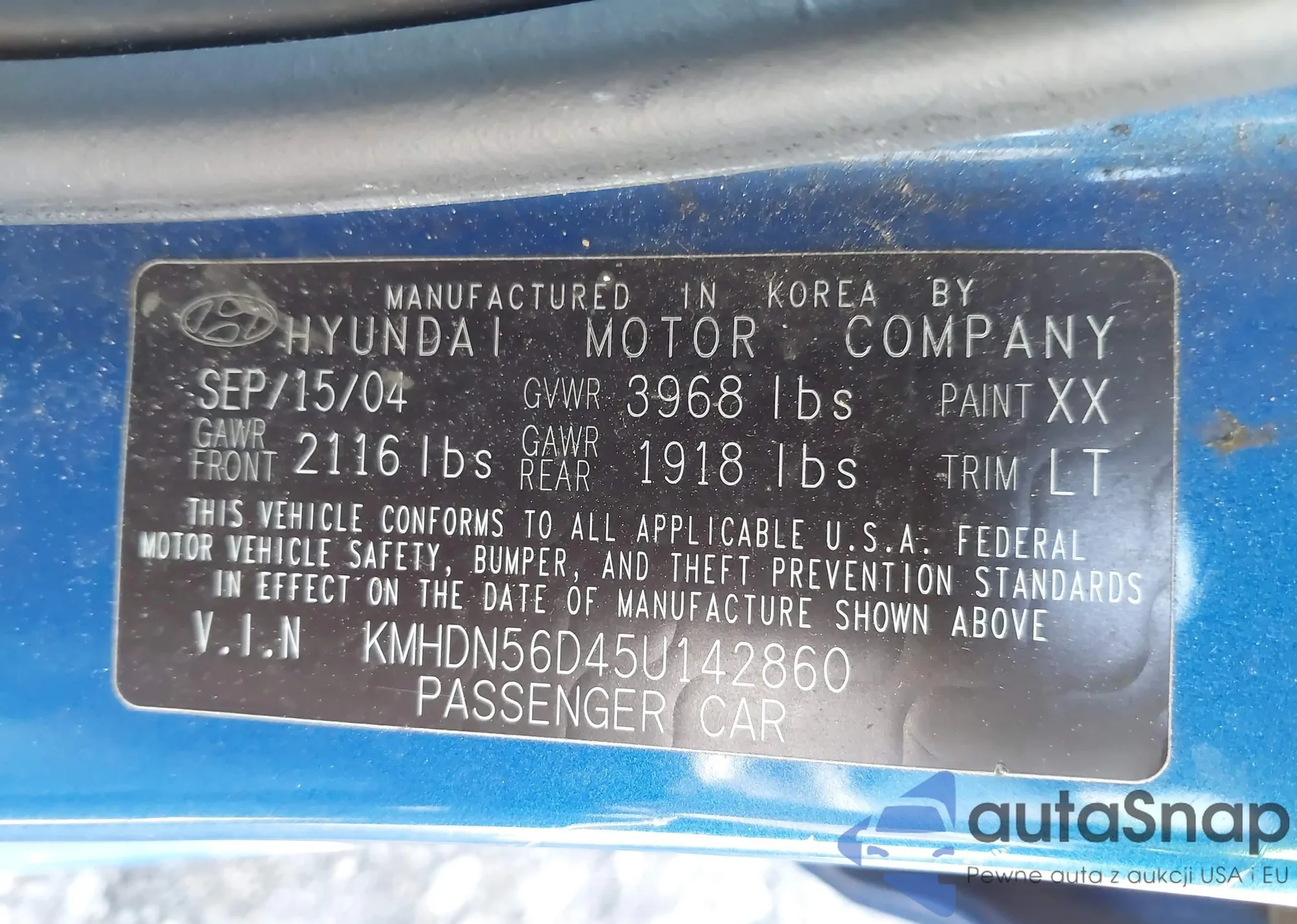 LOT: 42168213 VIN: KMHDN56D45U142860