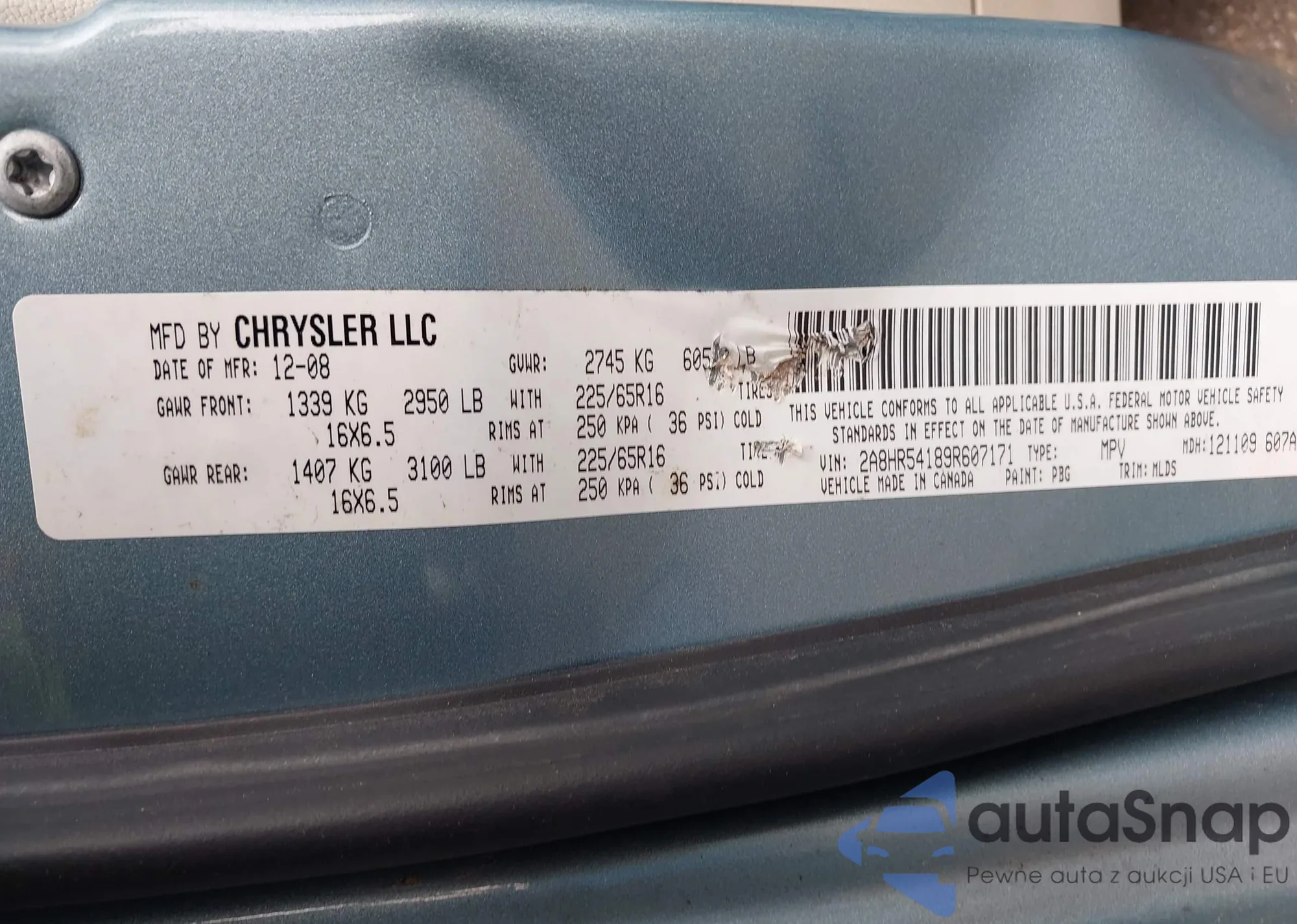 • VIN 2A8HR54189R607171