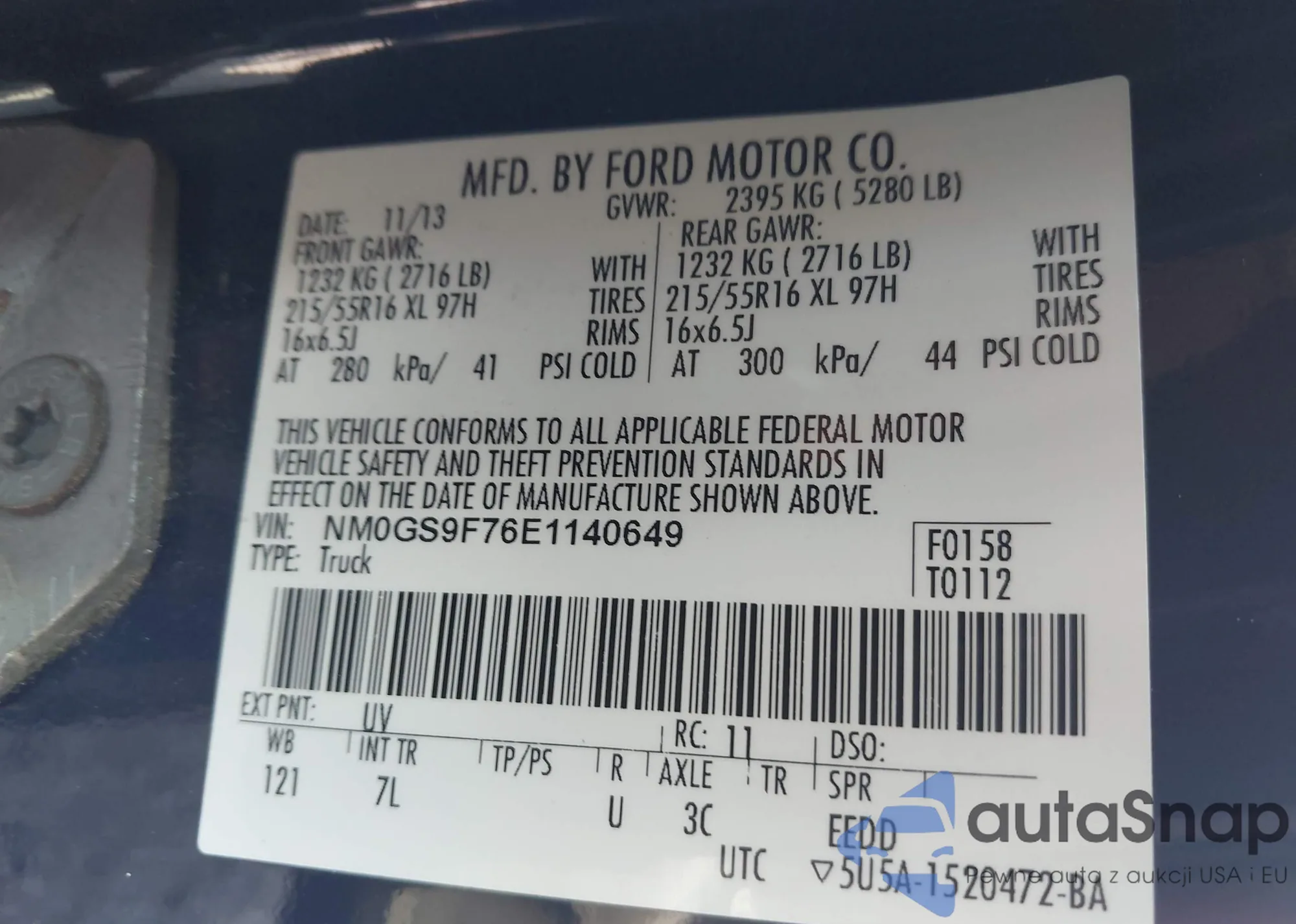 LOT: 42306549 VIN: NM0GS9F76E1140649