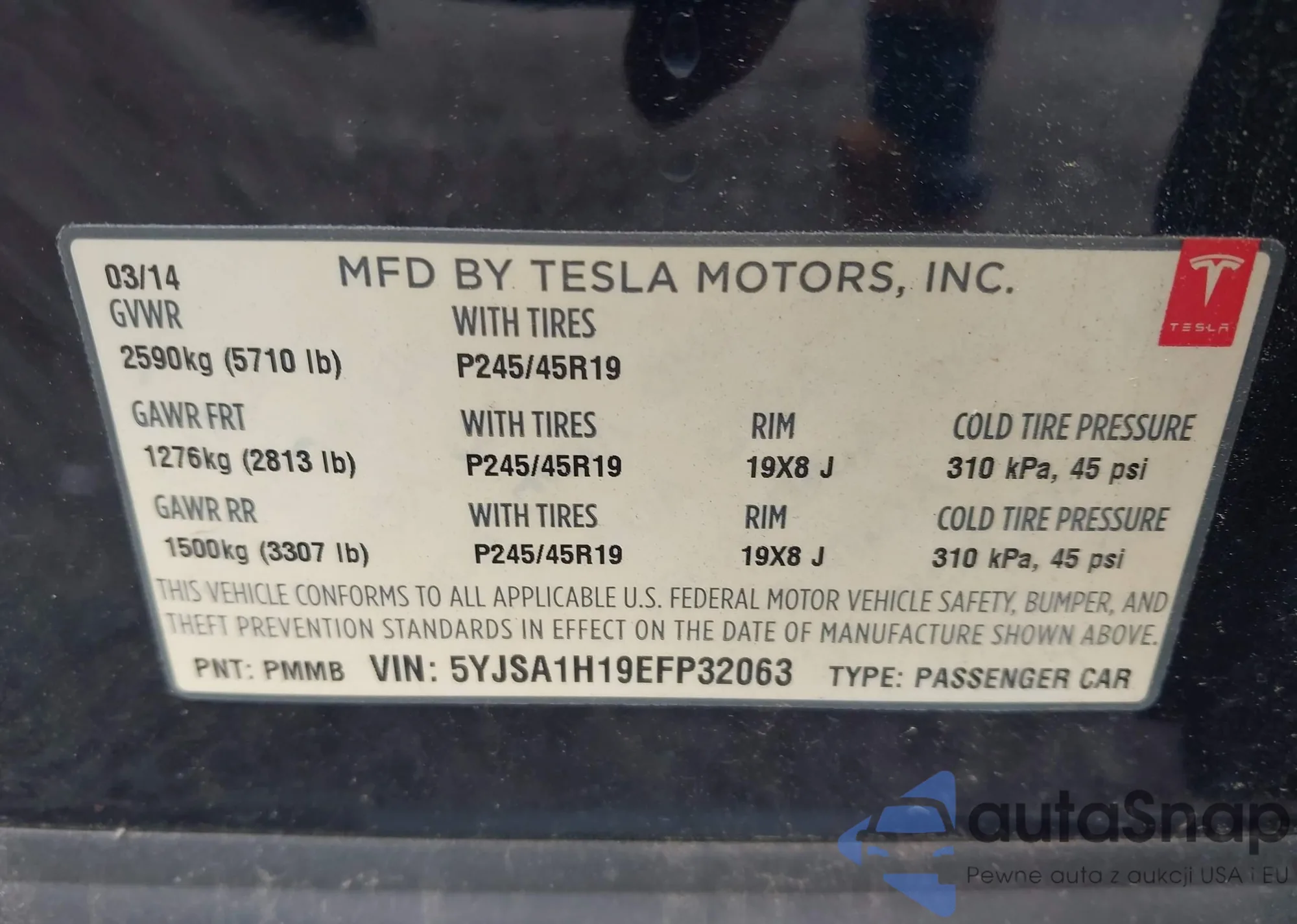 • VIN 5YJSA1H19EFP32063