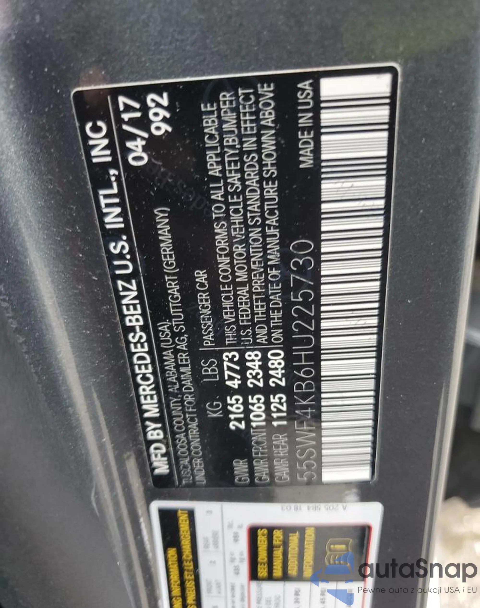 • VIN 55SWF4KB6HU225730