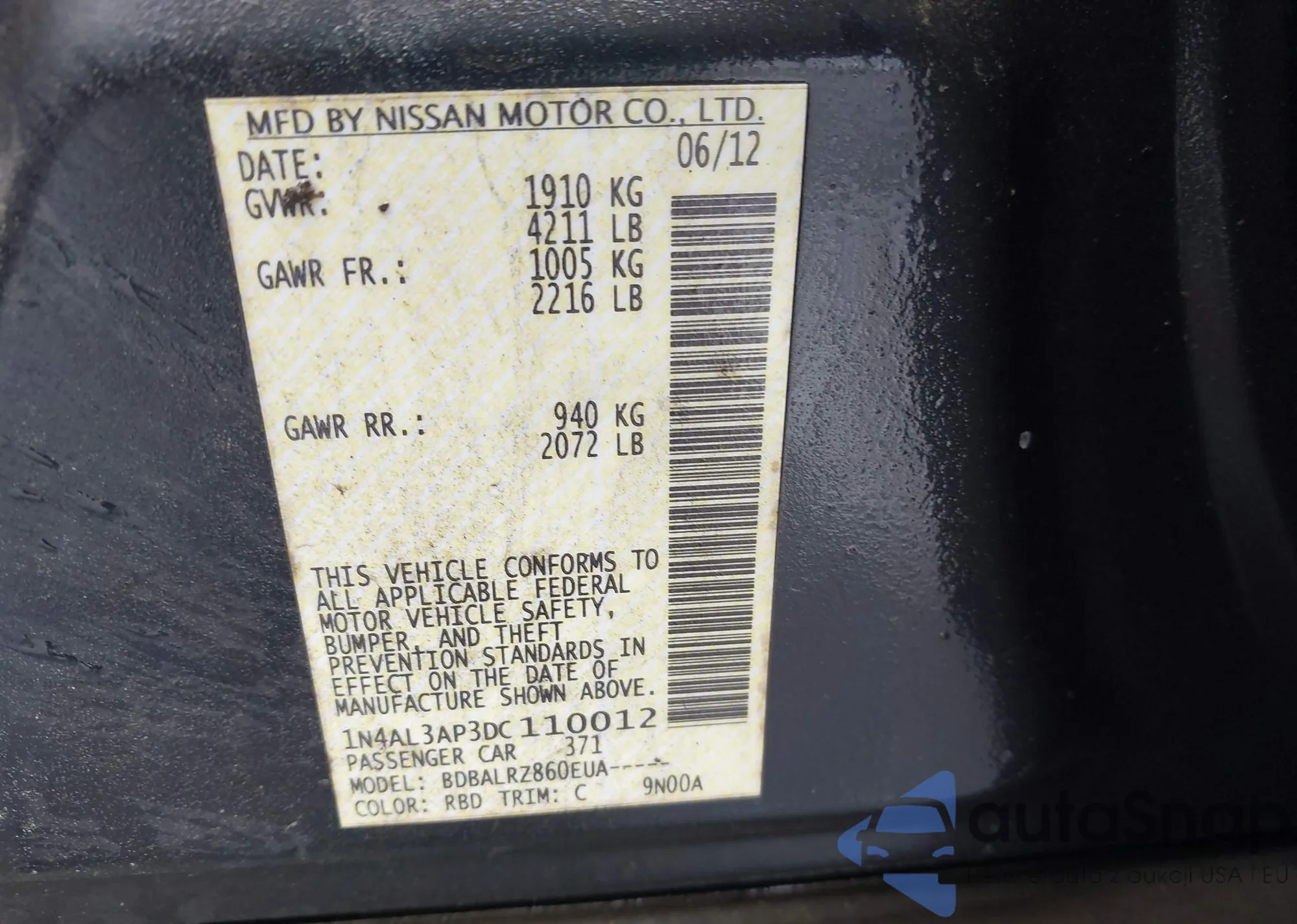 LOT: 42368802 VIN: 1N4AL3AP3DC110012