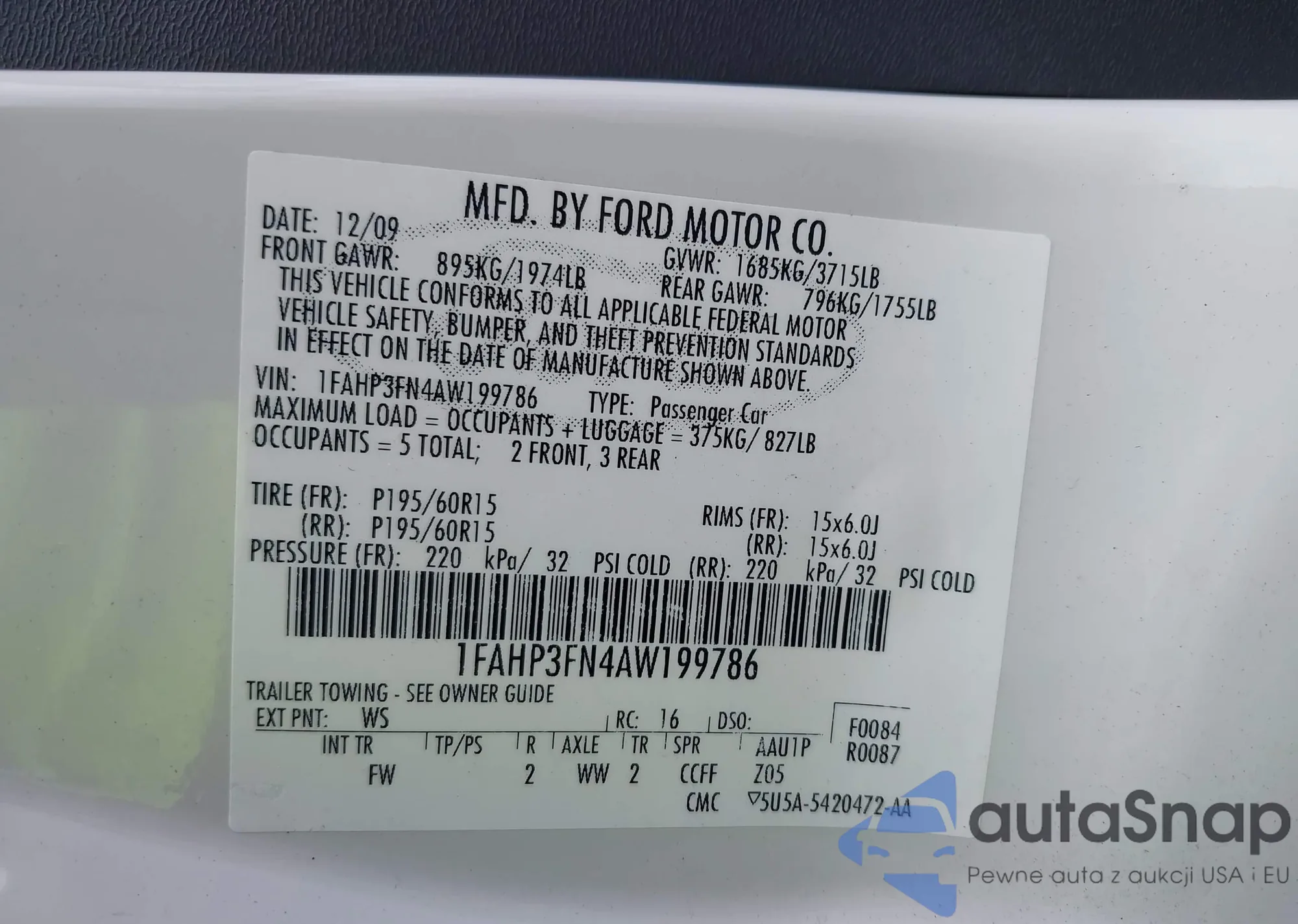 • VIN 1FAHP3FN4AW199786