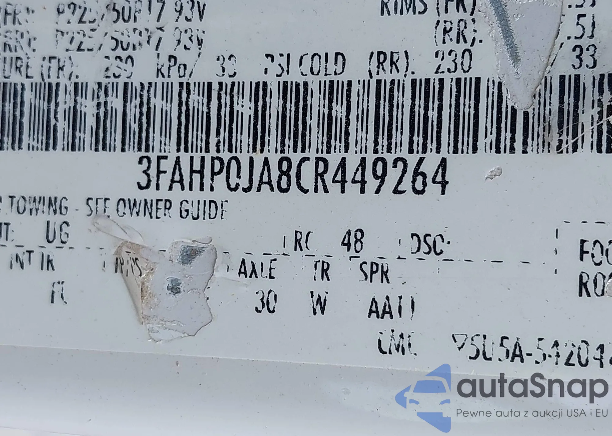 LOT: 42295169 VIN: 3FA6P0HR6DR127033