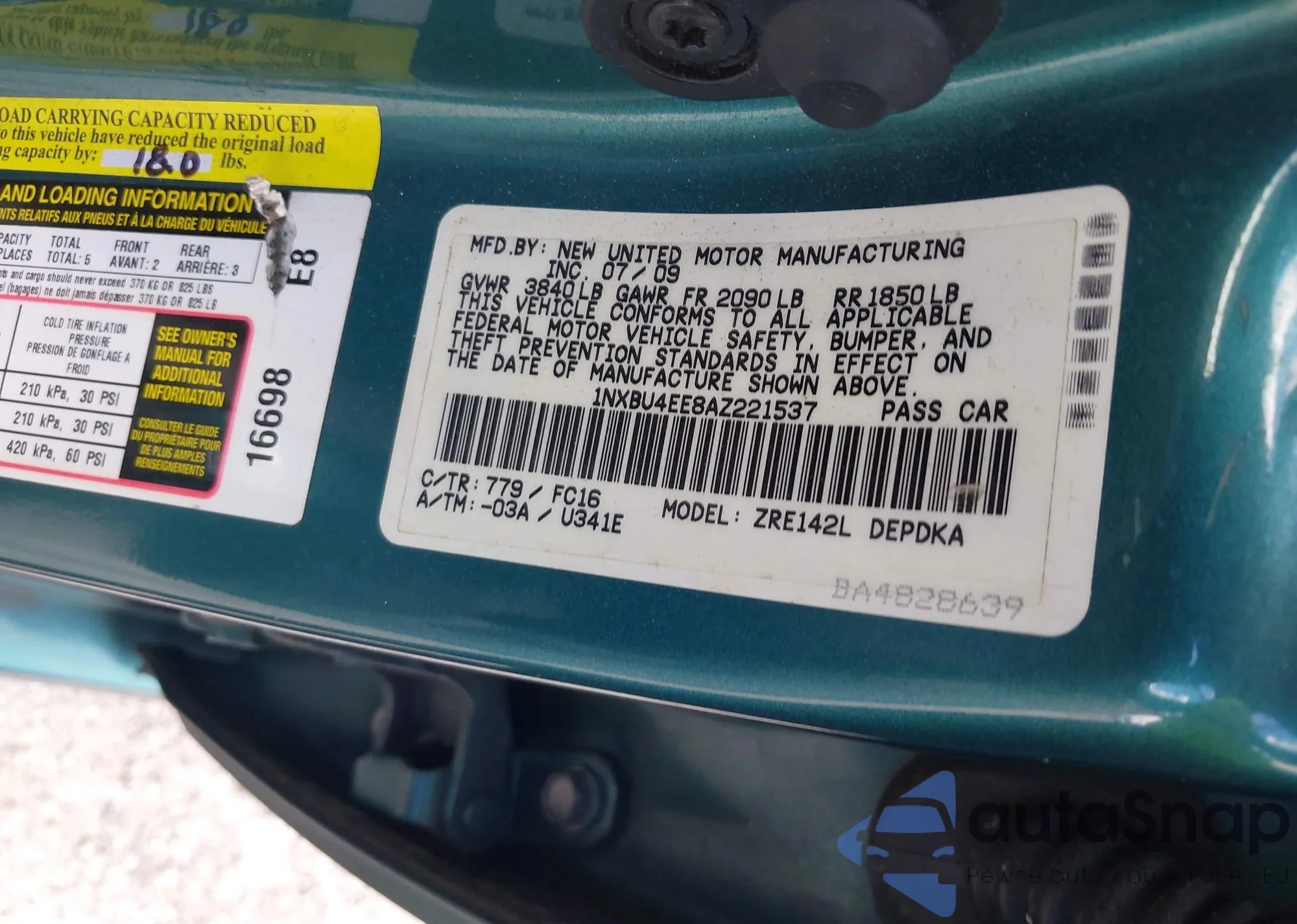 • VIN 1NXBU4EE8AZ221537