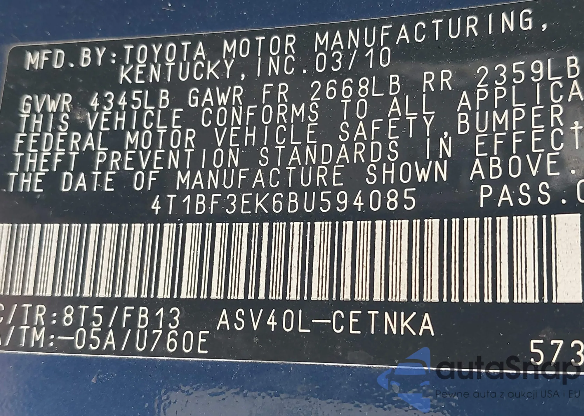 • VIN JN8AS5MT3DW523326
