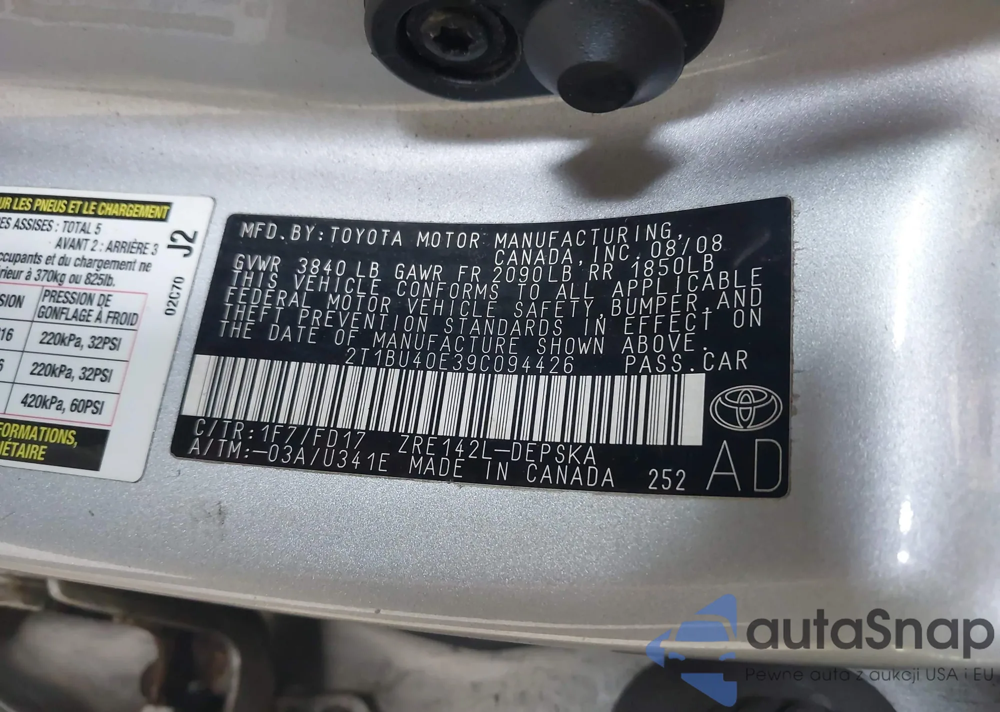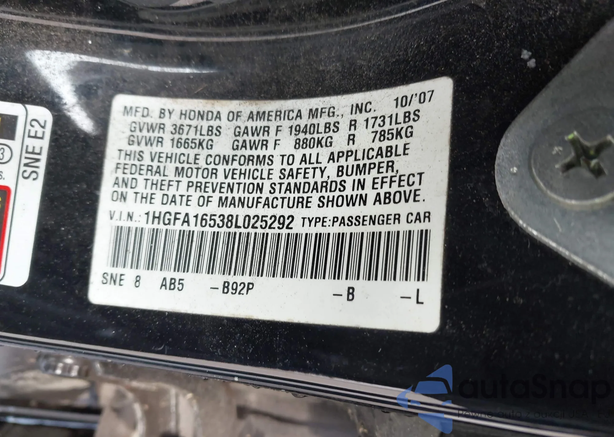 LOT: 42305924 VIN: 1HGFA16538L025292
