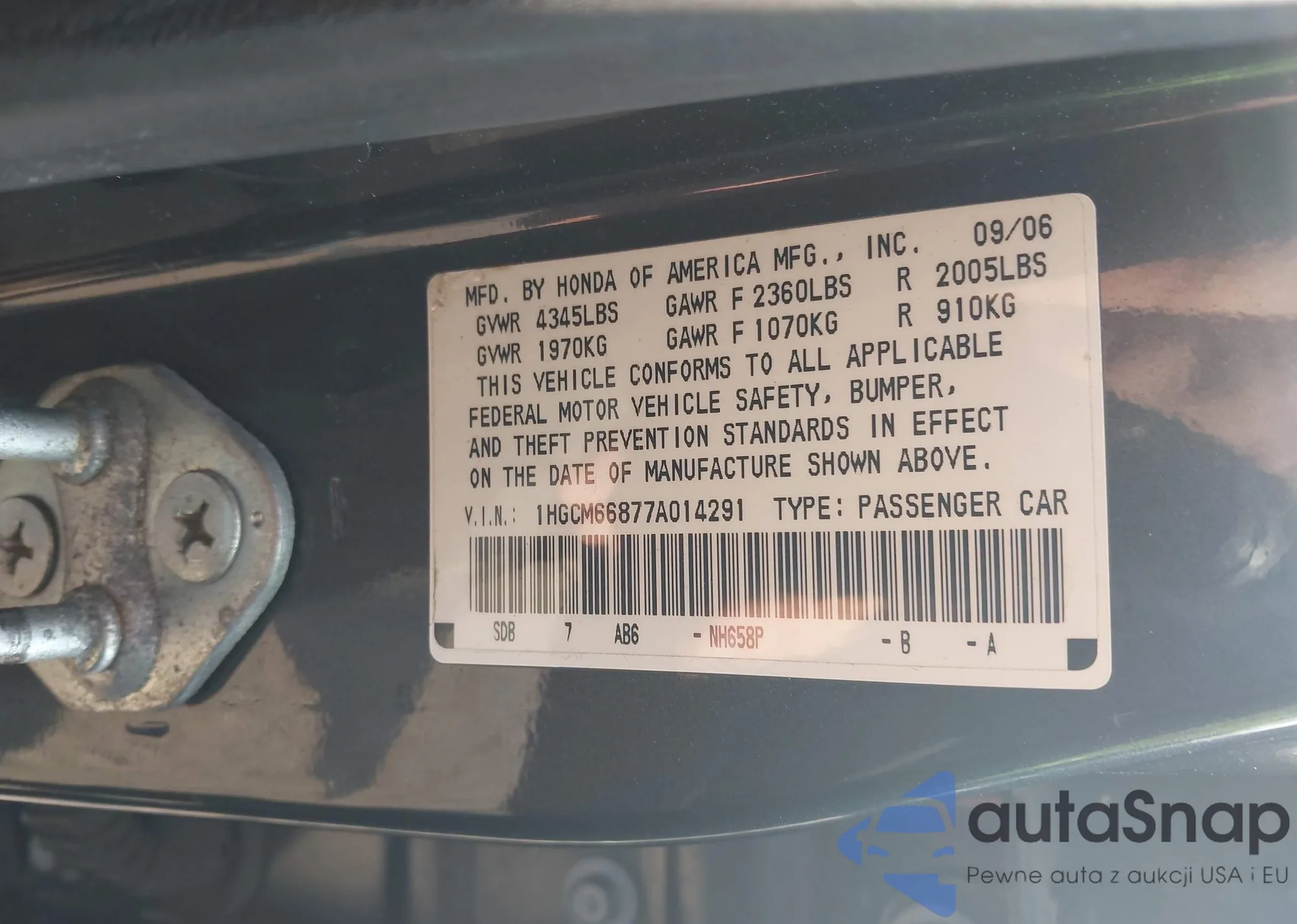 LOT: 42426081 VIN: 1HGCM66877A014291