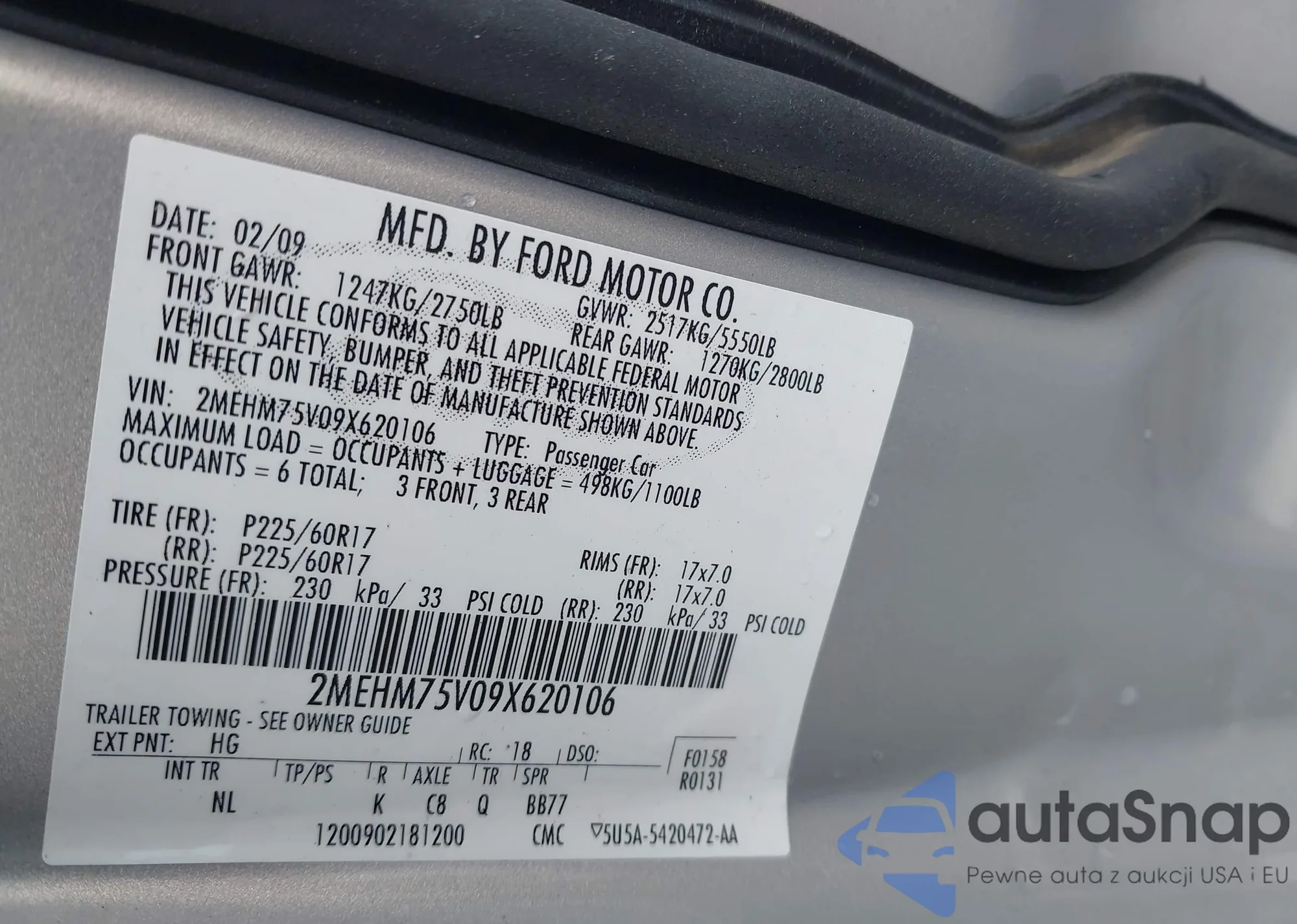 LOT: 42451181 VIN: 2MEHM75V09X620106