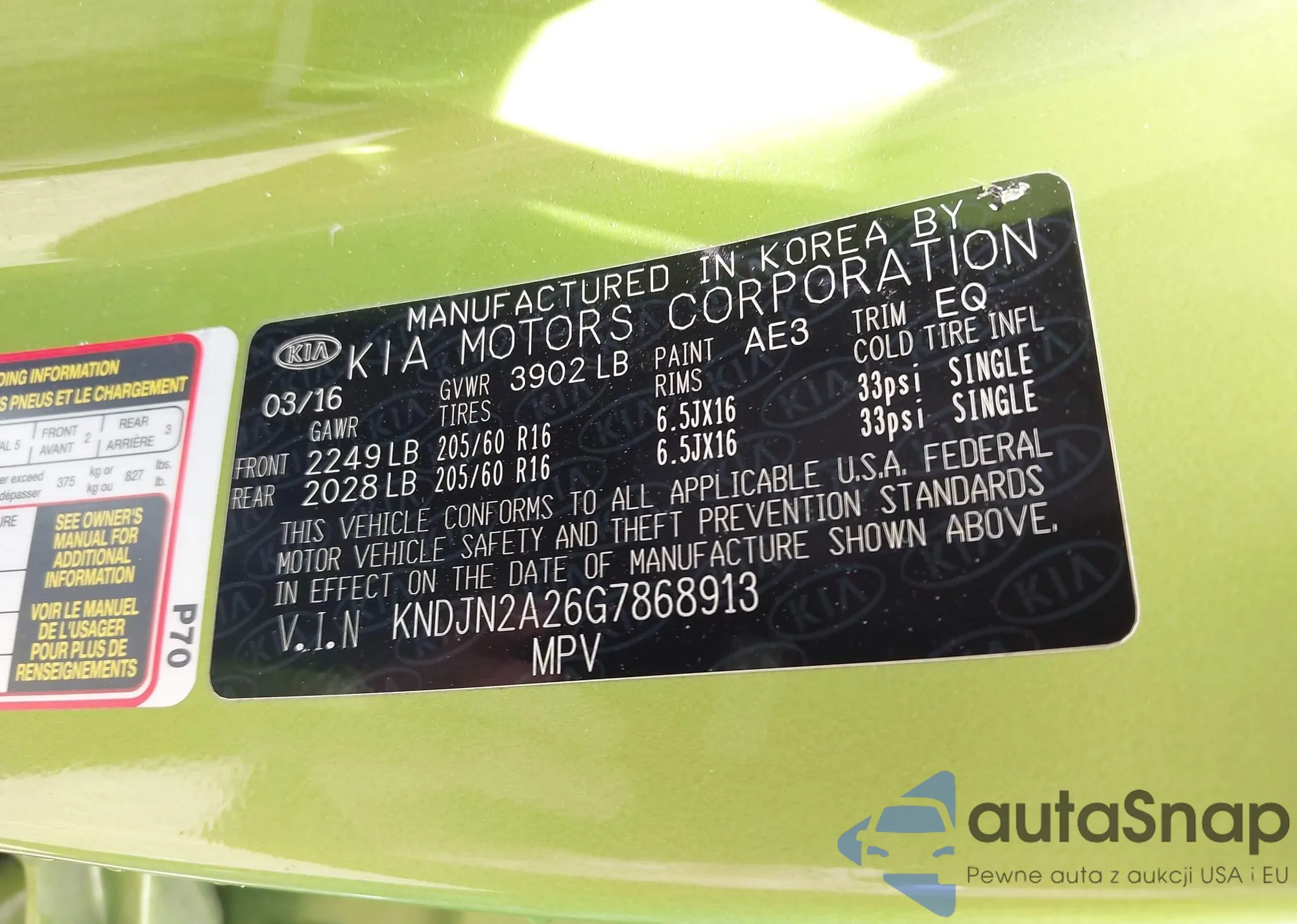 2016 Kia Soul z USA, uszkodzony, nr VIN KNDJN2A26G7868913