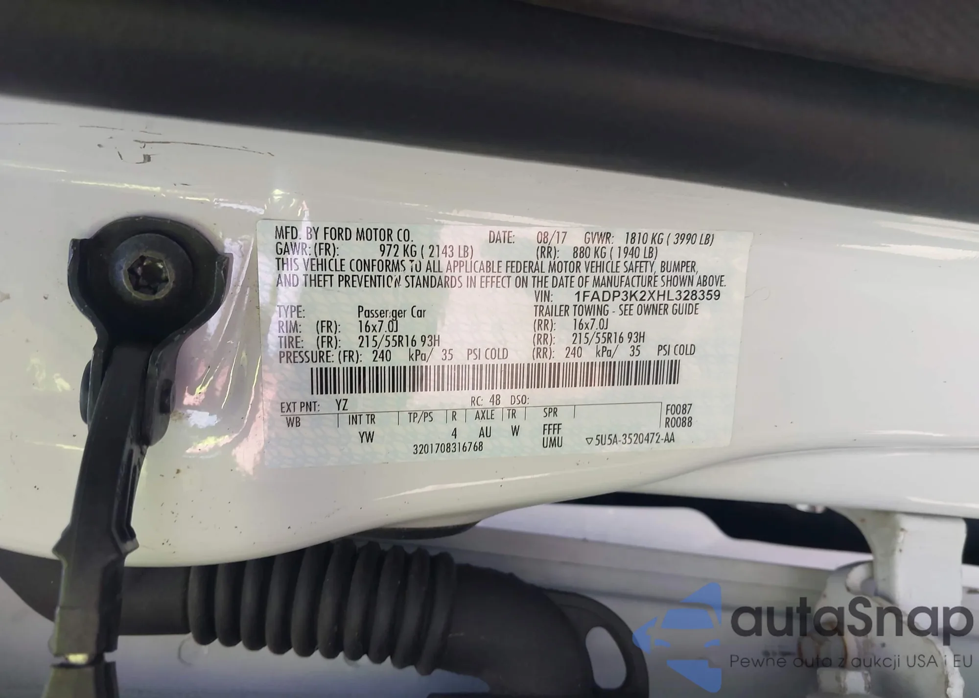 LOT: 42244594 VIN: 1FADP3K2XHL328359