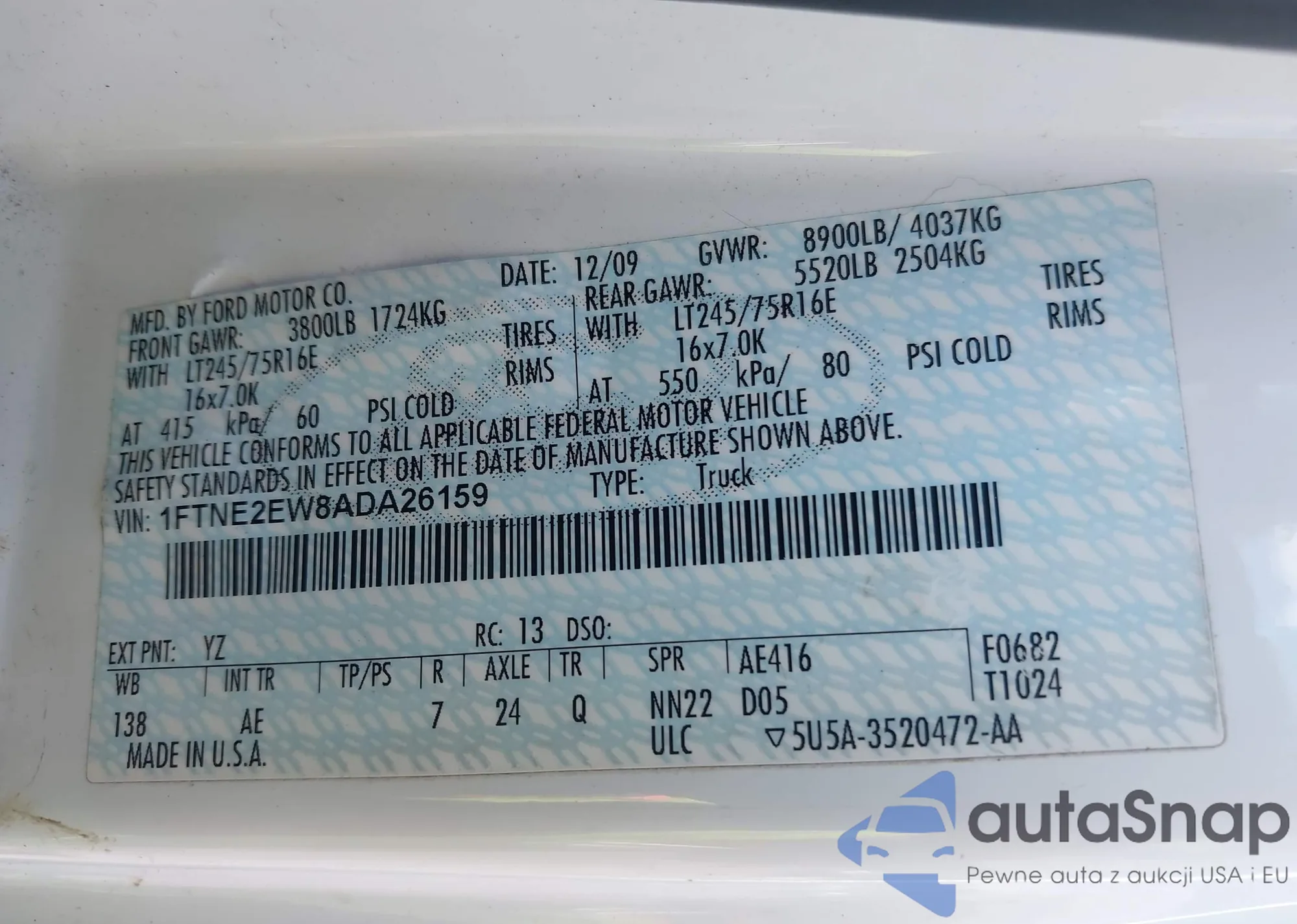 • VIN 1FTMF1CW1AKE05912