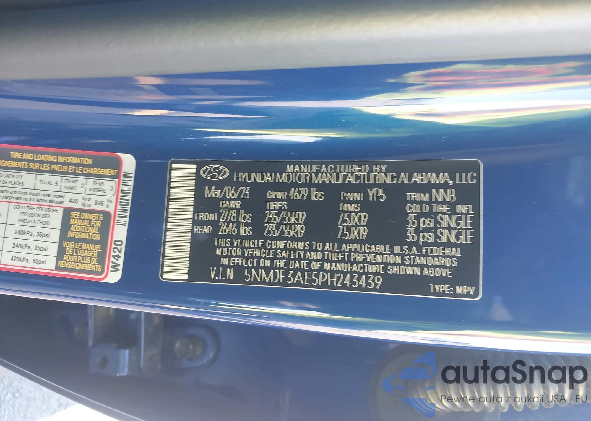 • VIN 5NMJF3AE5PH243439