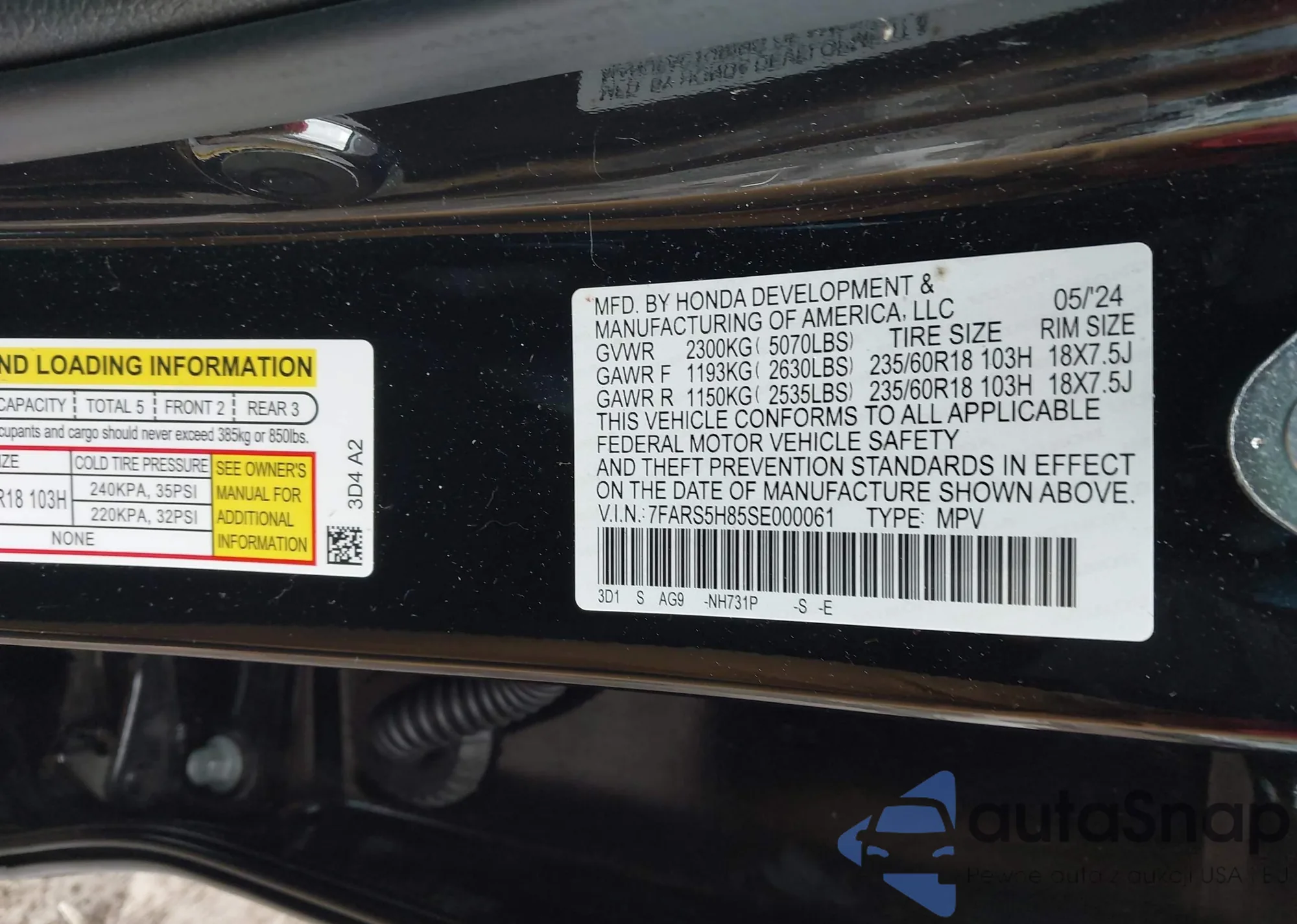 • VIN 7FARS5H85SE000061