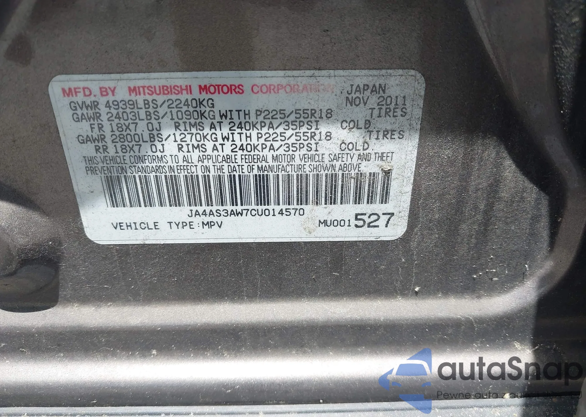 • VIN JA4AS3AW7CU014570