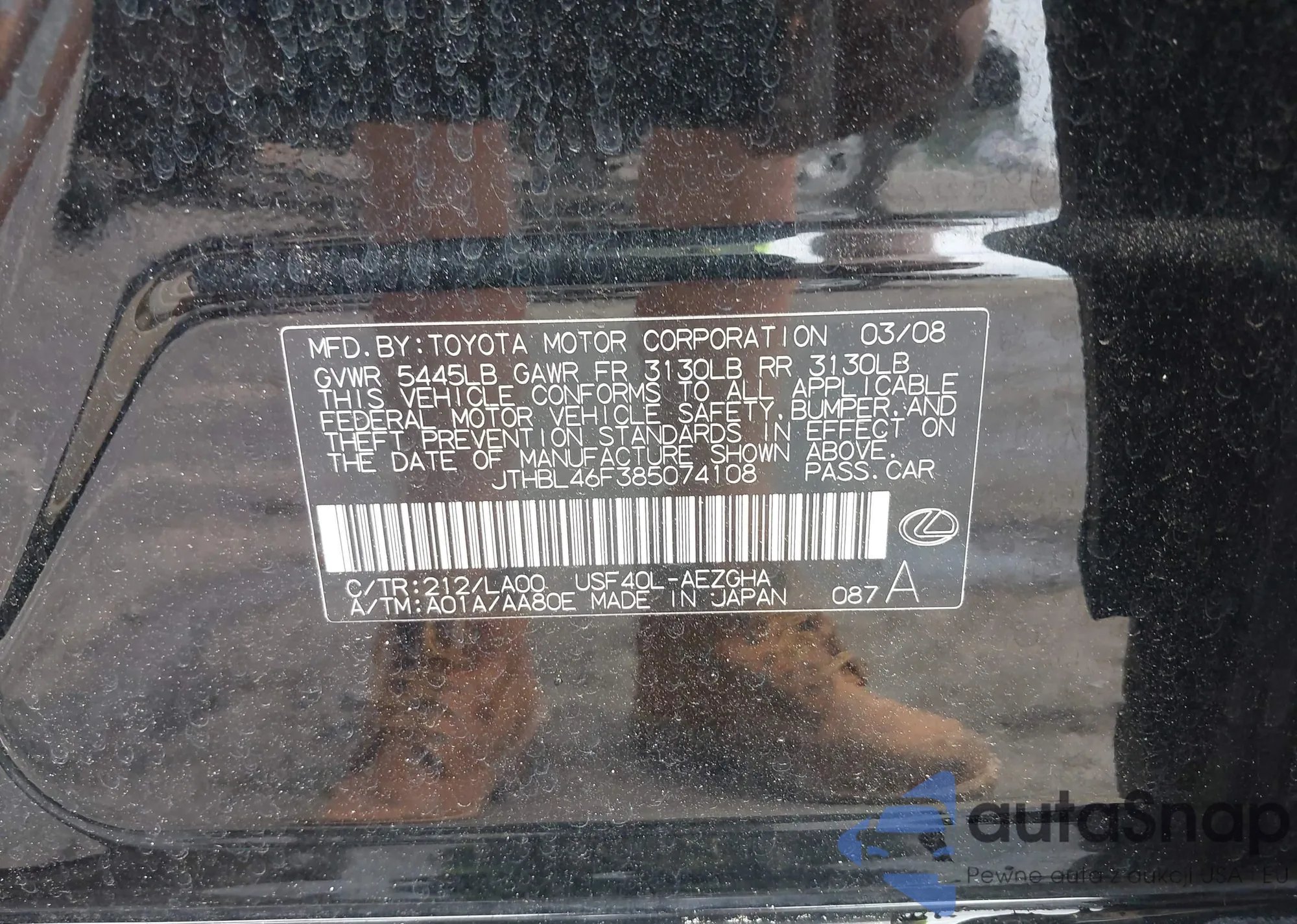 LOT: 42334968 VIN: 7FARS5H85SE000061