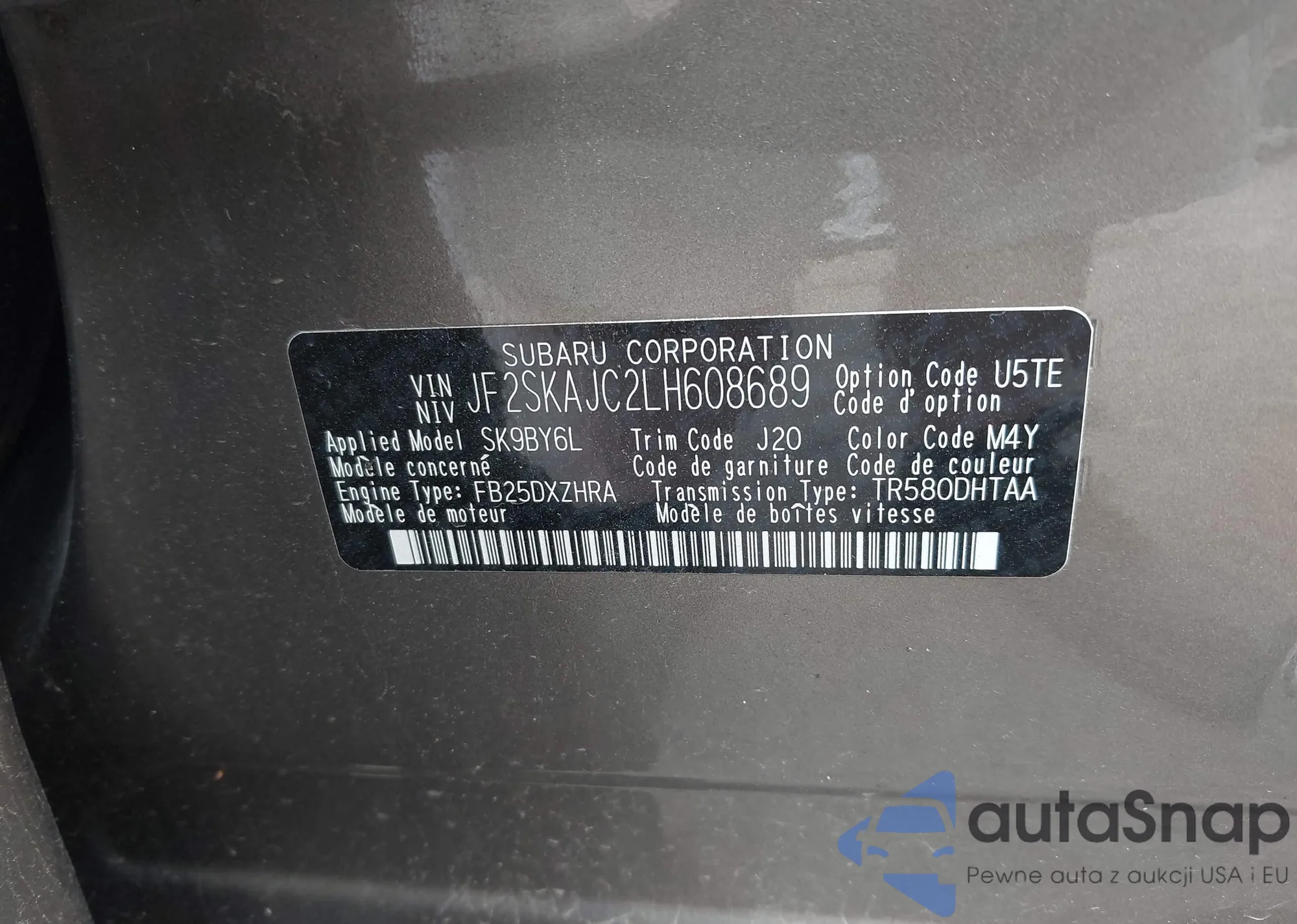 LOT: 42251401 VIN: JF2SKAJC2LH608689