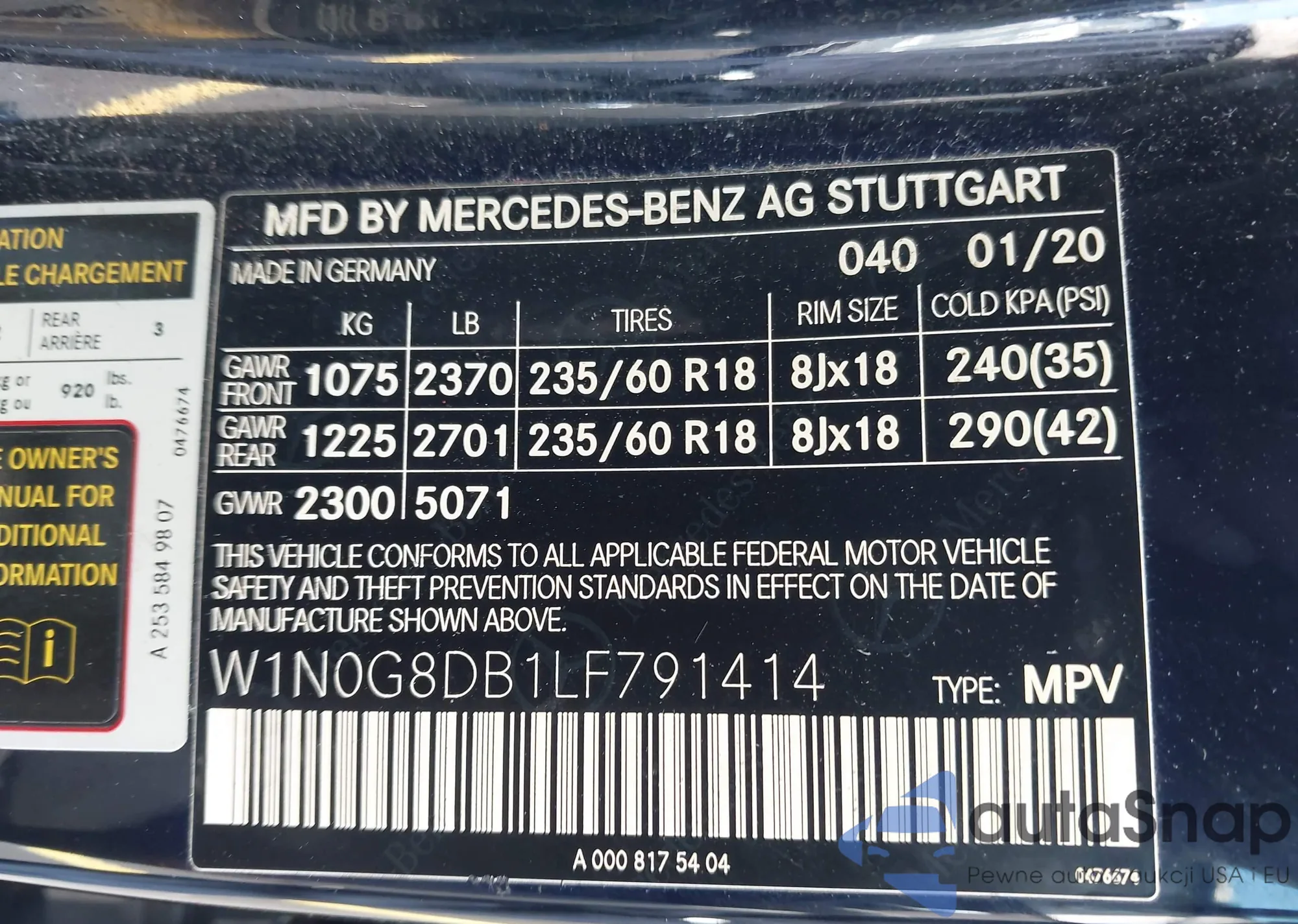 • VIN W1N0G8DB1LF791414