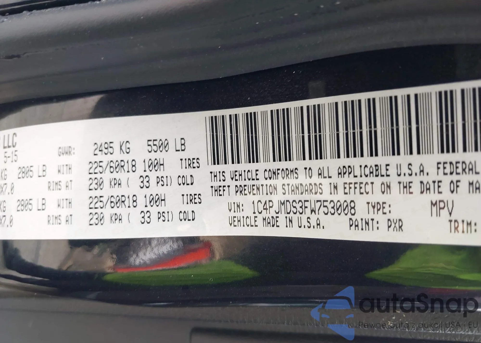 • VIN 1C4PJMDS3FW753008