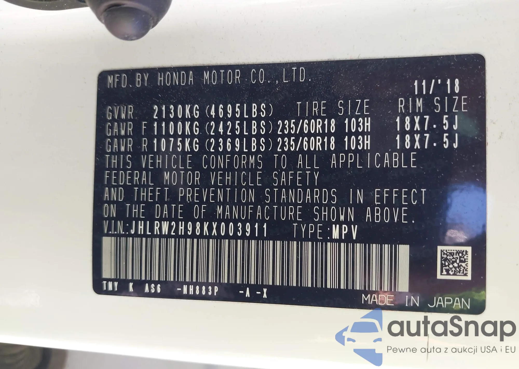 • VIN 5J6TF2H56DL002499