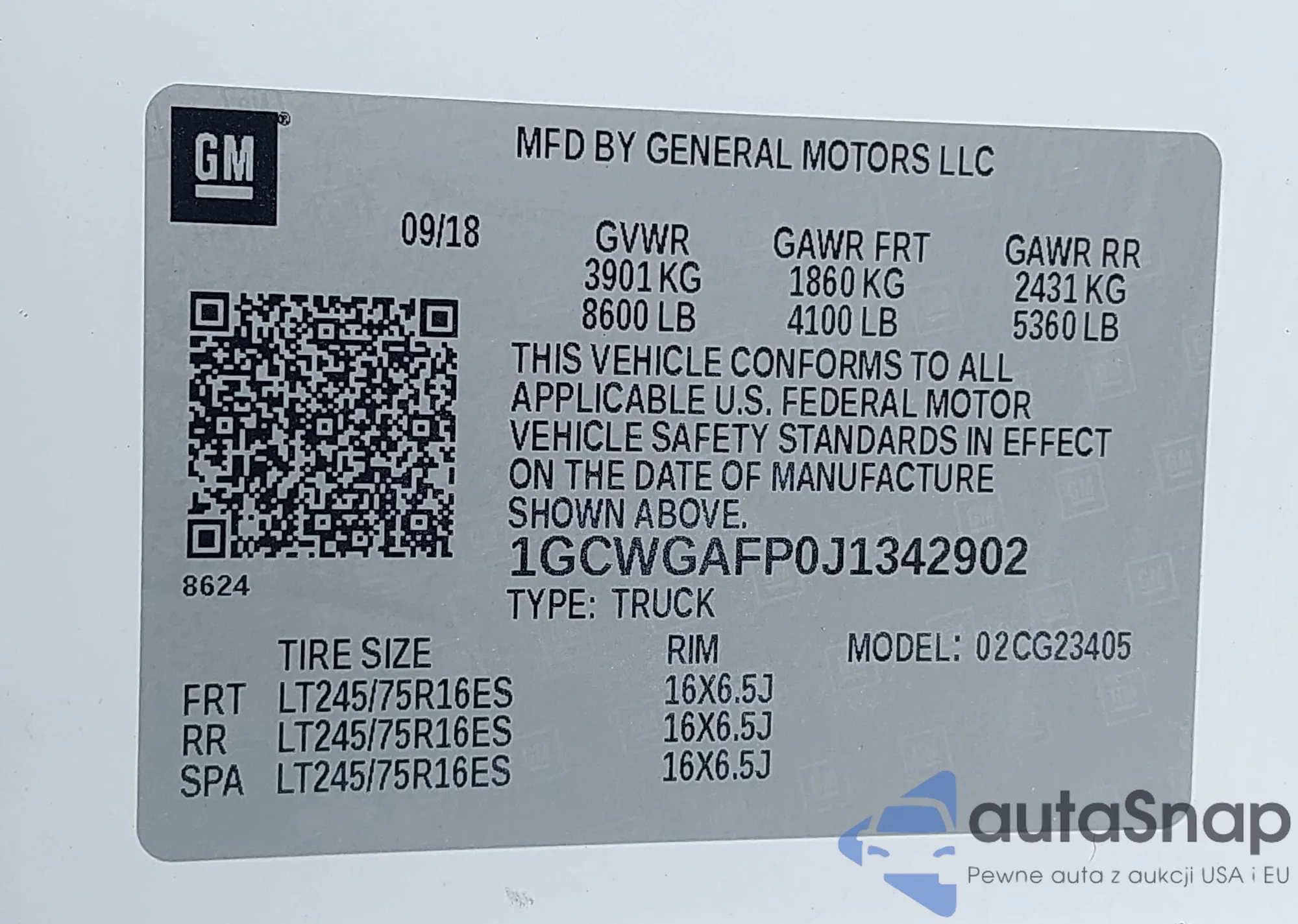LOT: 42568676 VIN: 1GCWGAFP0J1342902