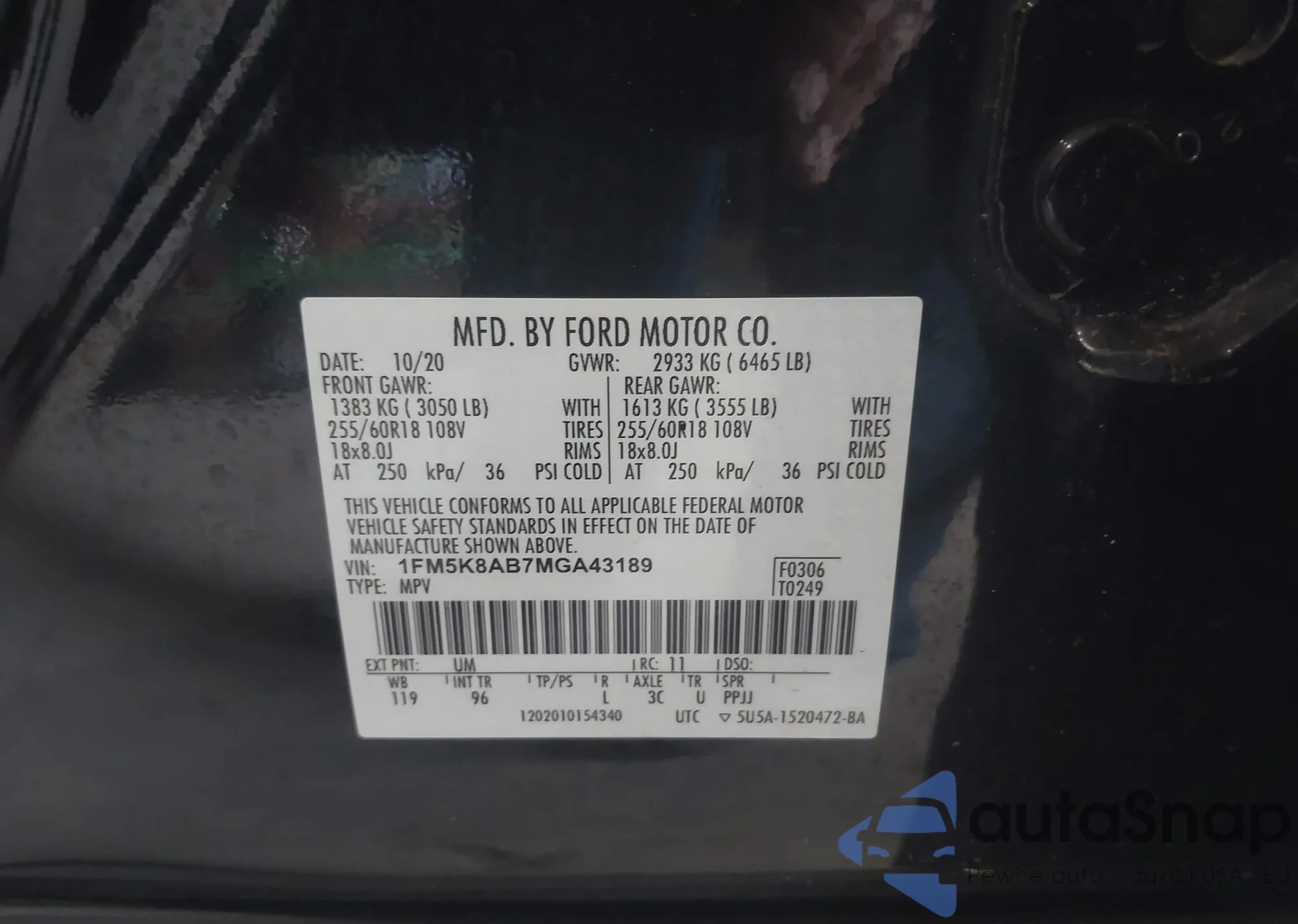 • VIN 1FM5K8AB7MGA43189