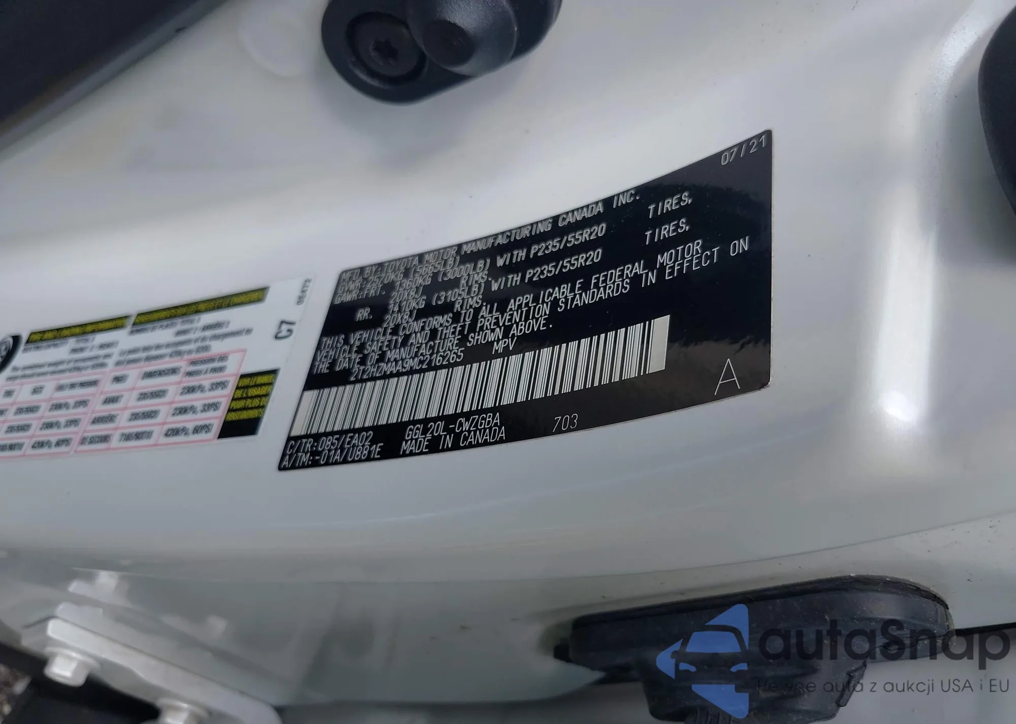 • VIN 2T2HZMAA9MC216265