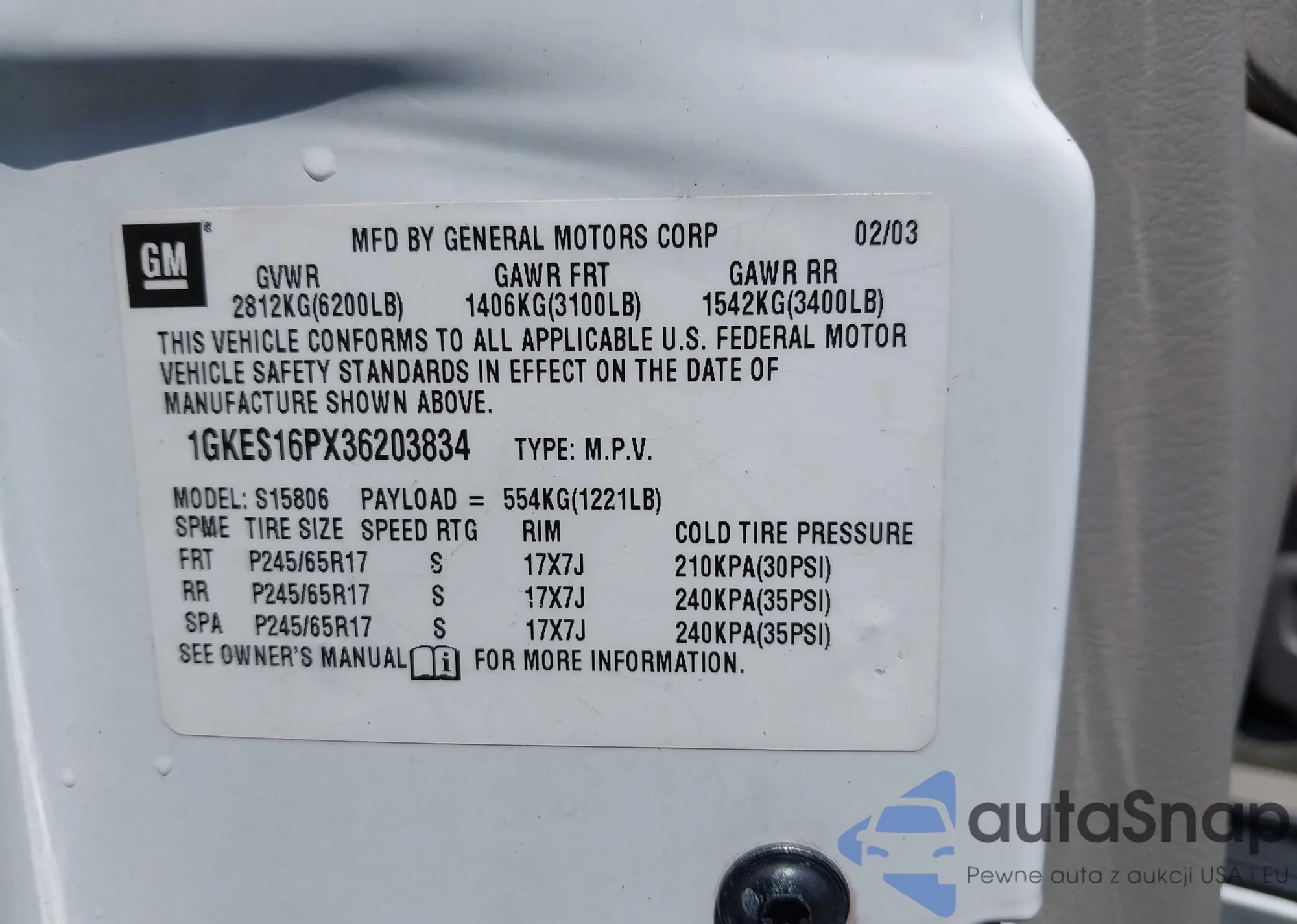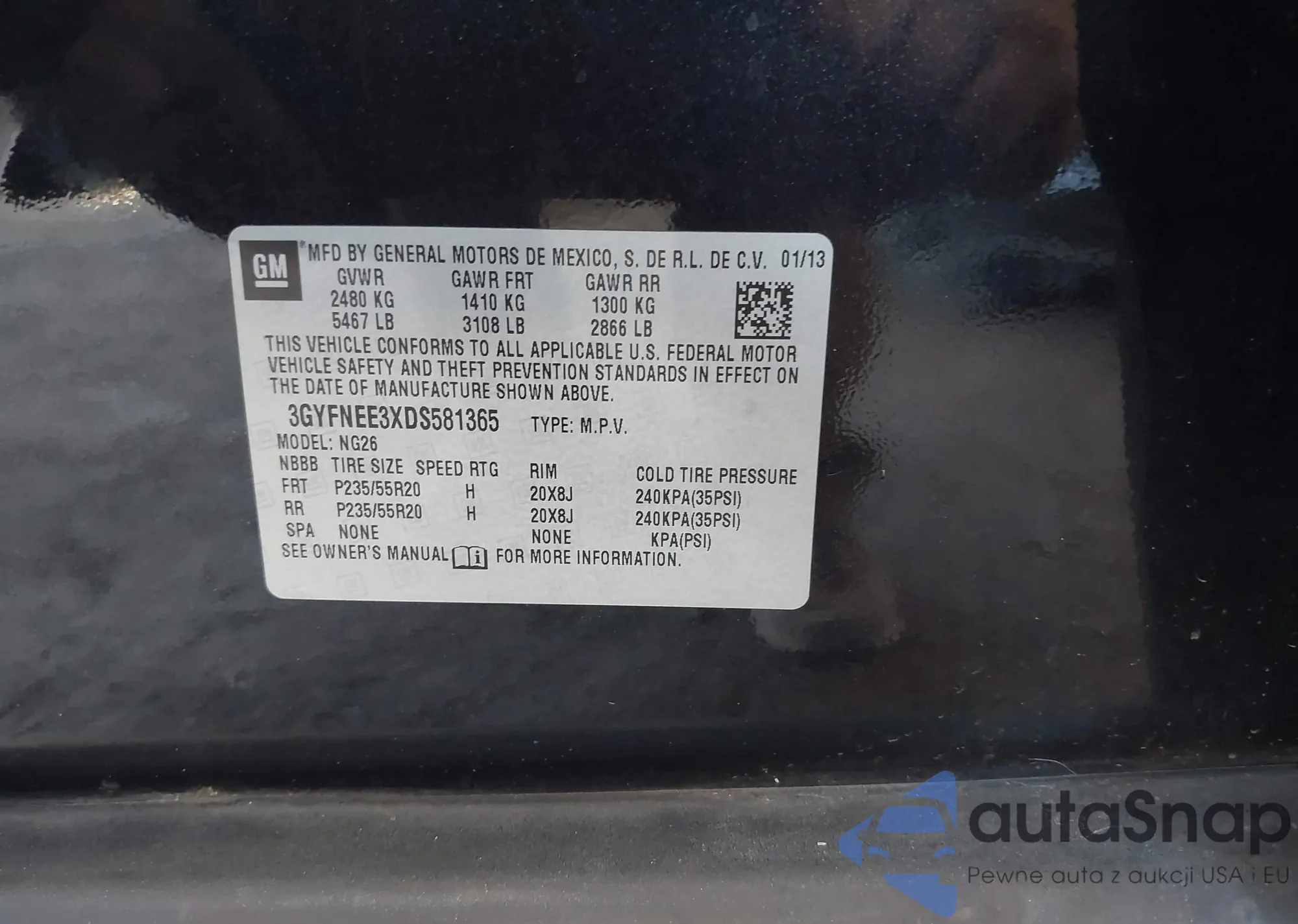 • VIN 3GYFNEE3XDS581365