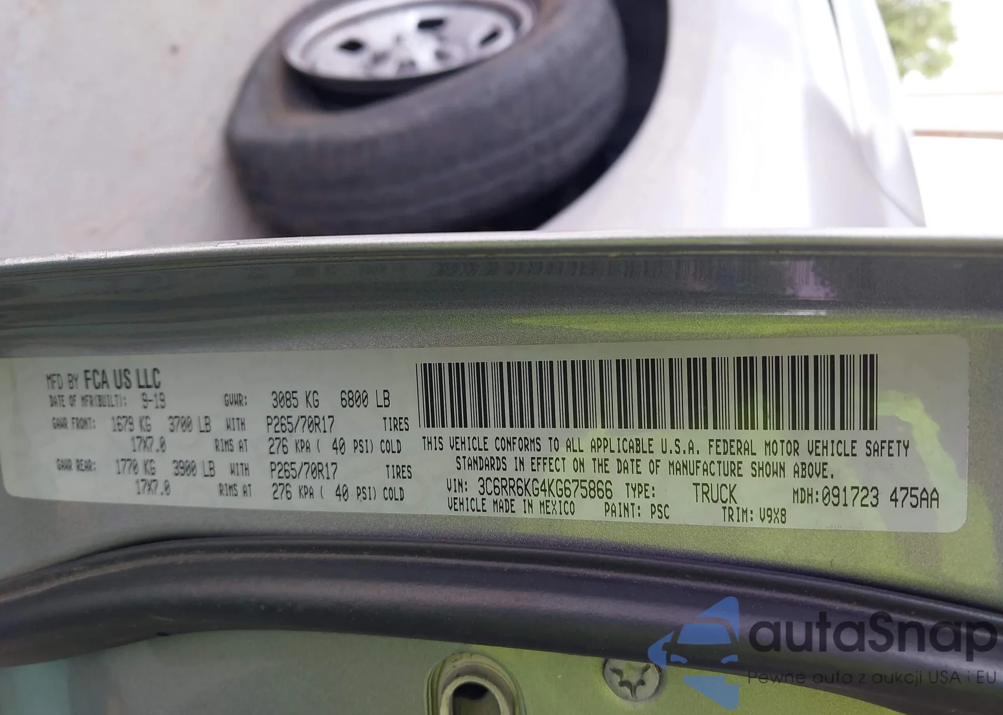• VIN 3C6RR6KG4KG675866