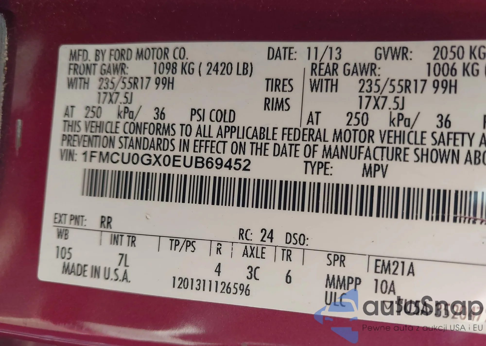 • VIN 1FMNU43S0YEE35271