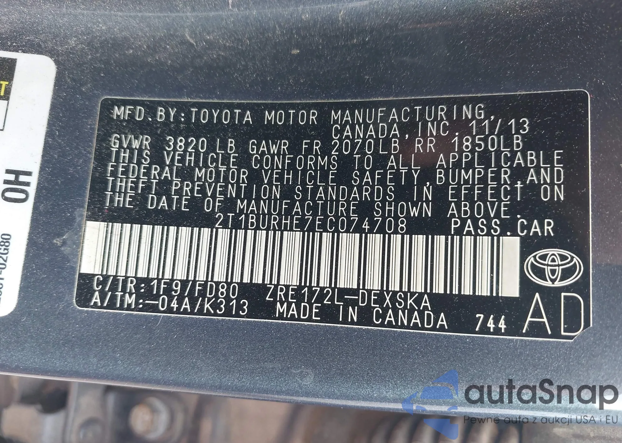 • VIN 1G6AE5RX6J0147107
