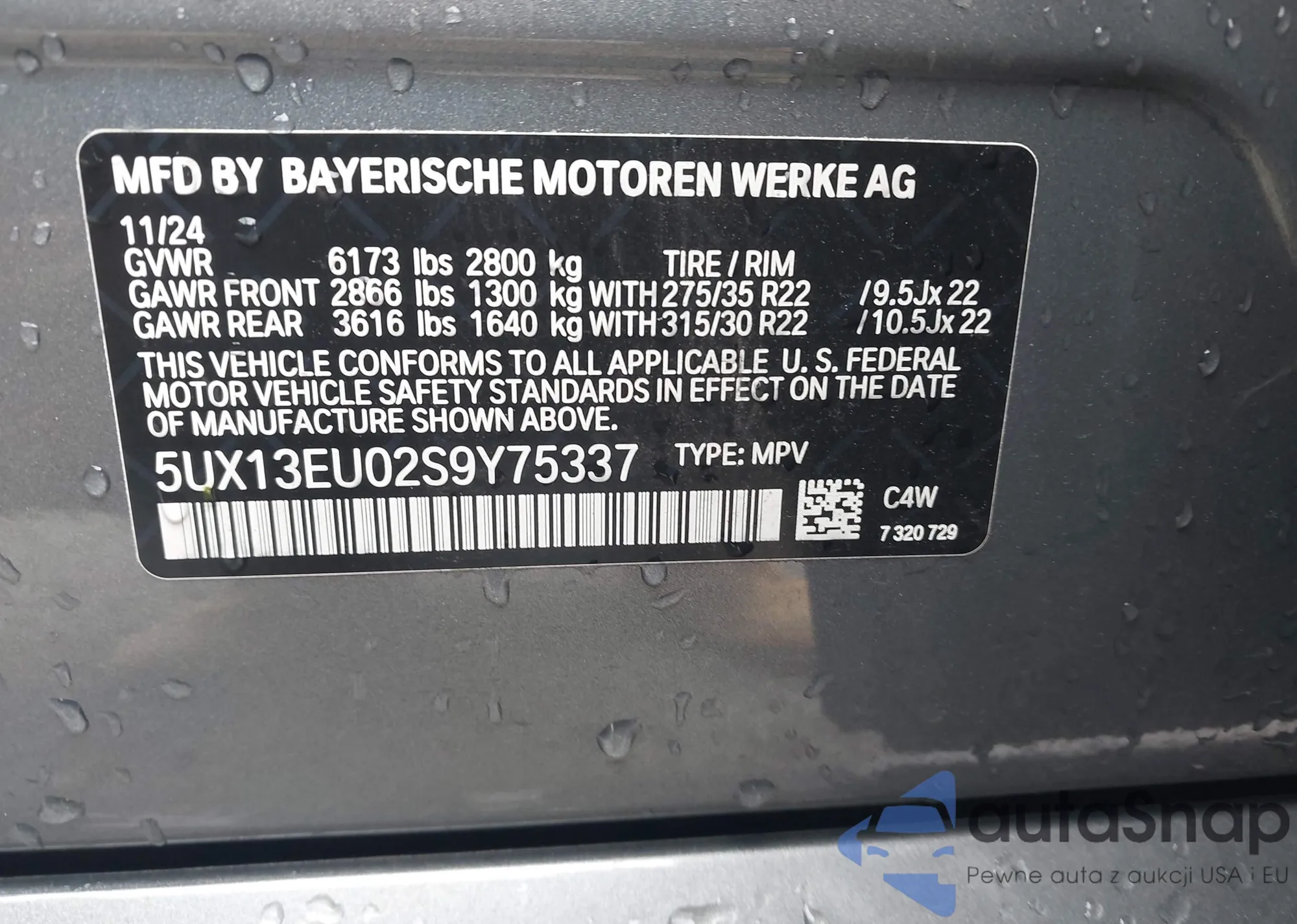 • VIN 5UX13EU02S9Y75337