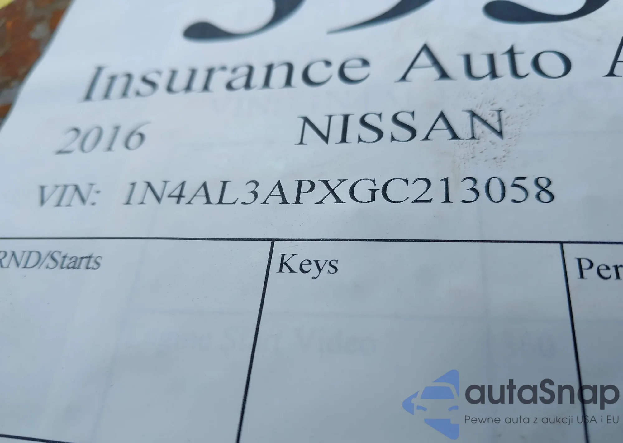 LOT: 39399877 VIN: 1N4AL3APXGC213058